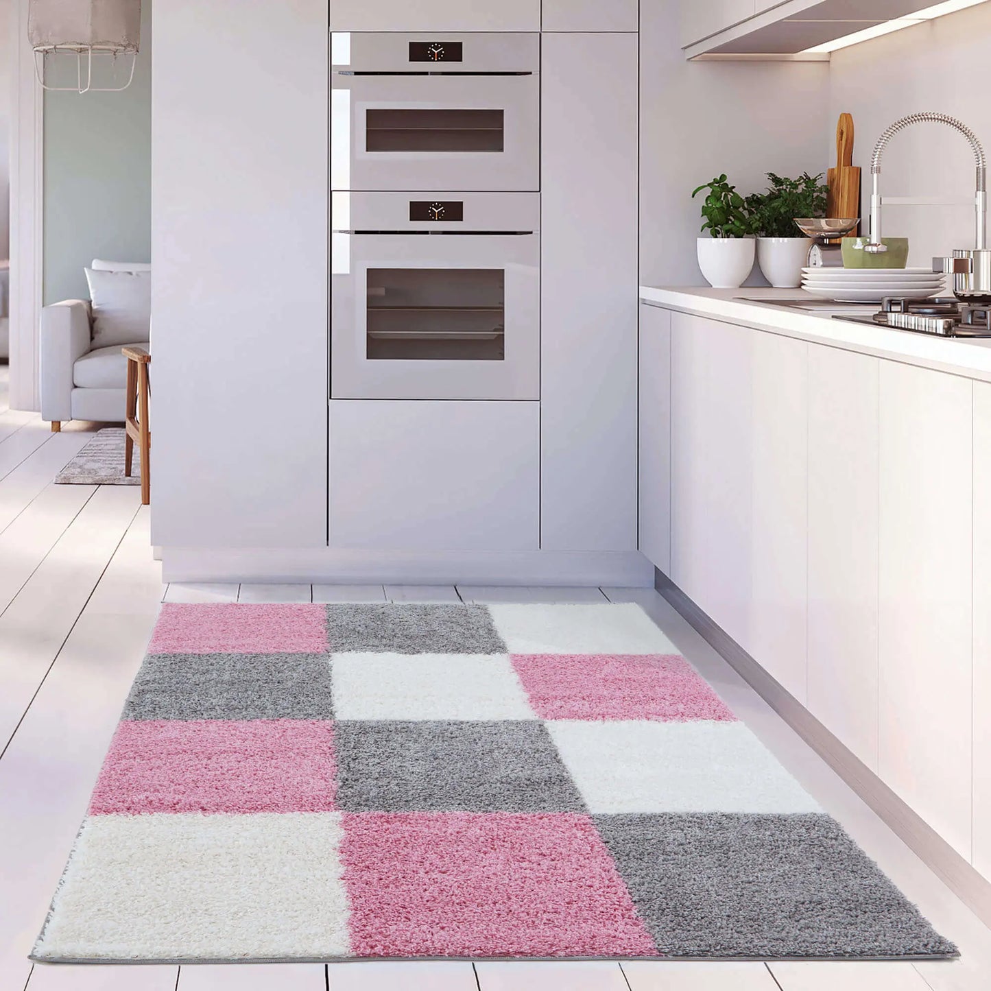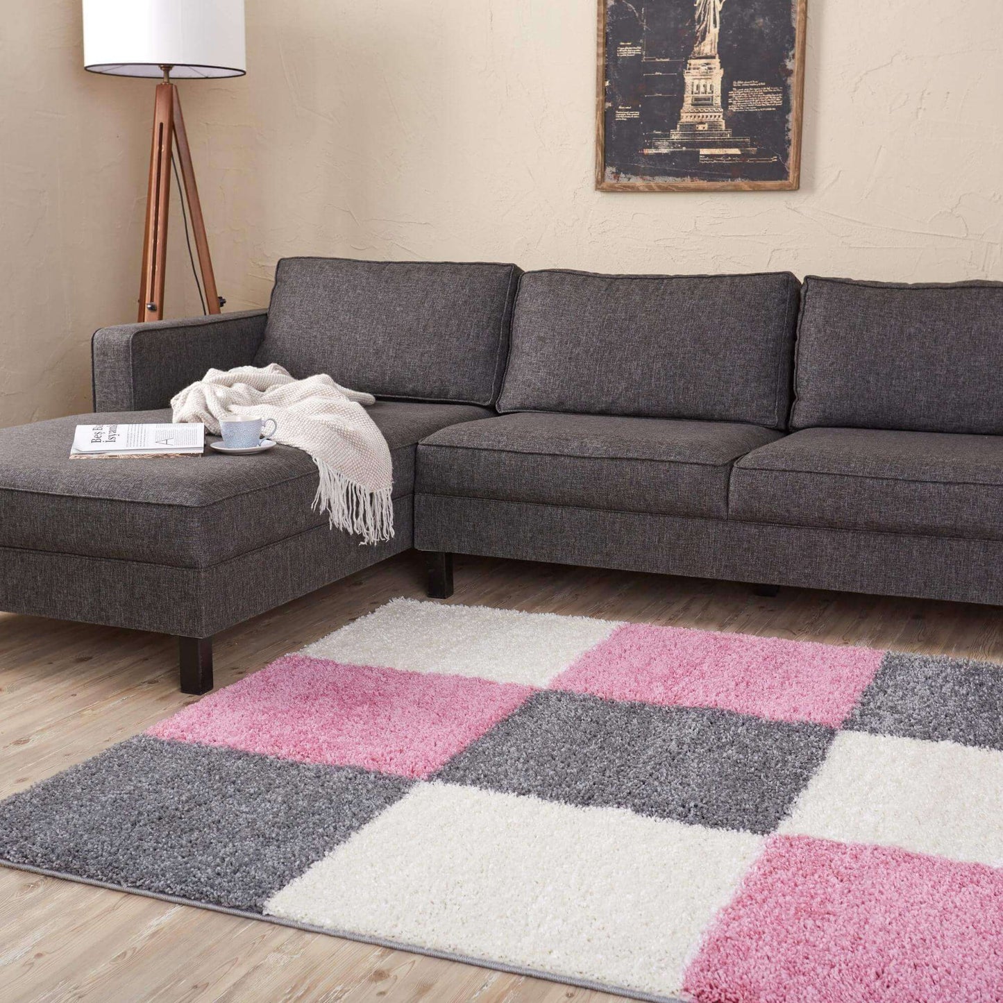 Geometric Design Thick Shaggy Area Rugs Pink iss a top-notch luxury and high-quality shaggy rug. Soft 100% twisted fibre shaggy rugs are made from high-quality polypropylene also meaning it is totally non-shedding quality. A natural trendy look that gives a marvellous effect and dense pile.