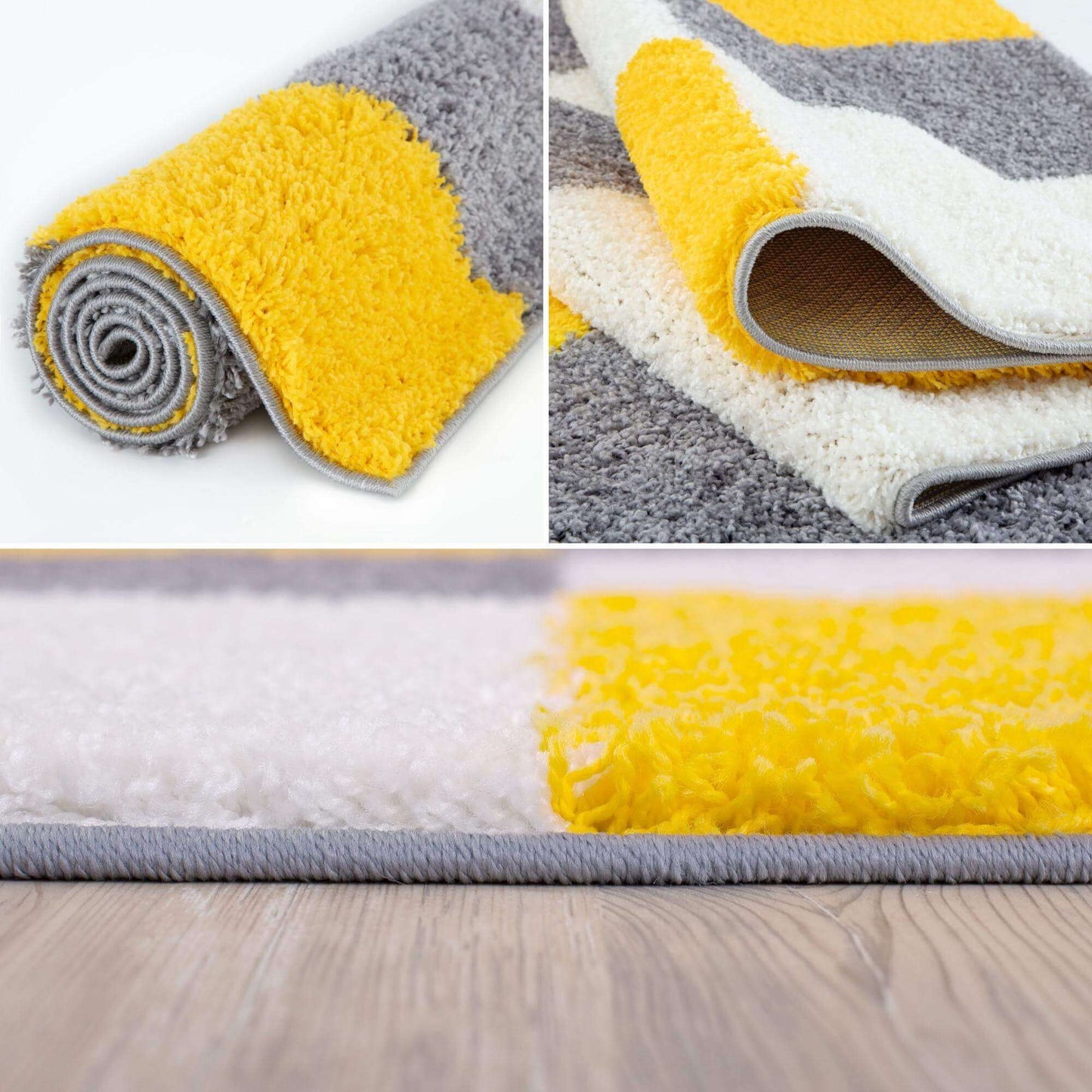 Premium Shaggy Rug Geometric Design Yellow has a pile height of 30mm and is thicker than other shaggy rugs. The design of the shaggy rug conveys an exquisite look and rich feel and a pleasing choice of patterns. This rug can easily suit any room, classic or modern.