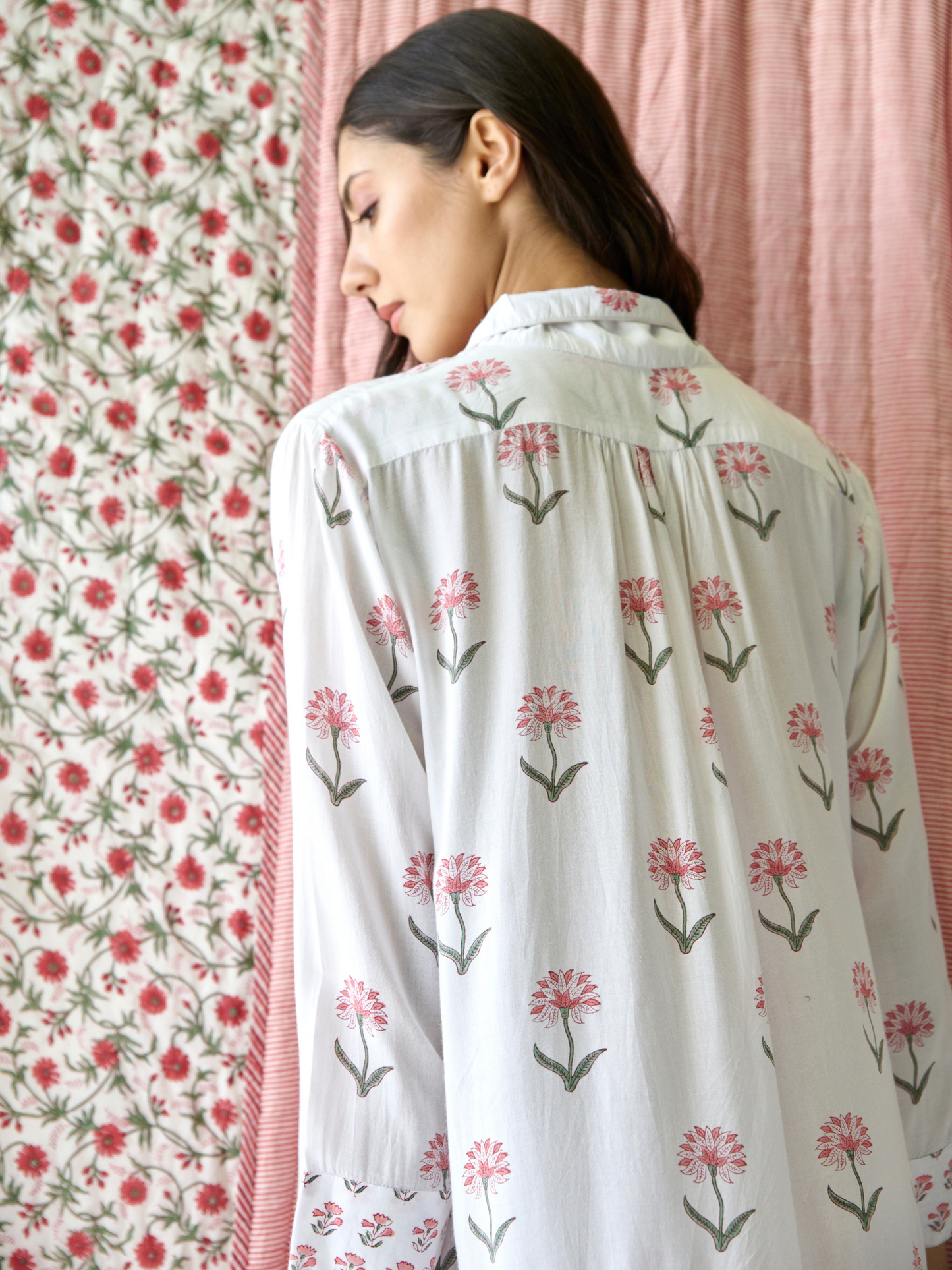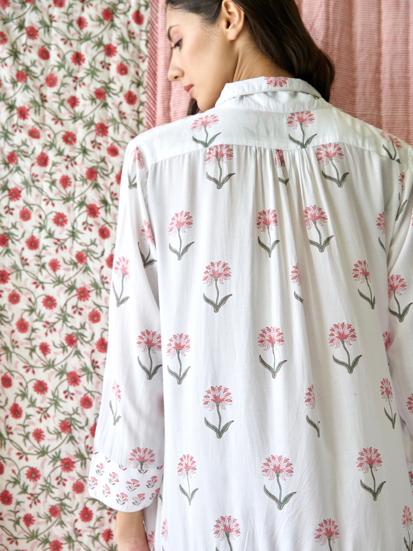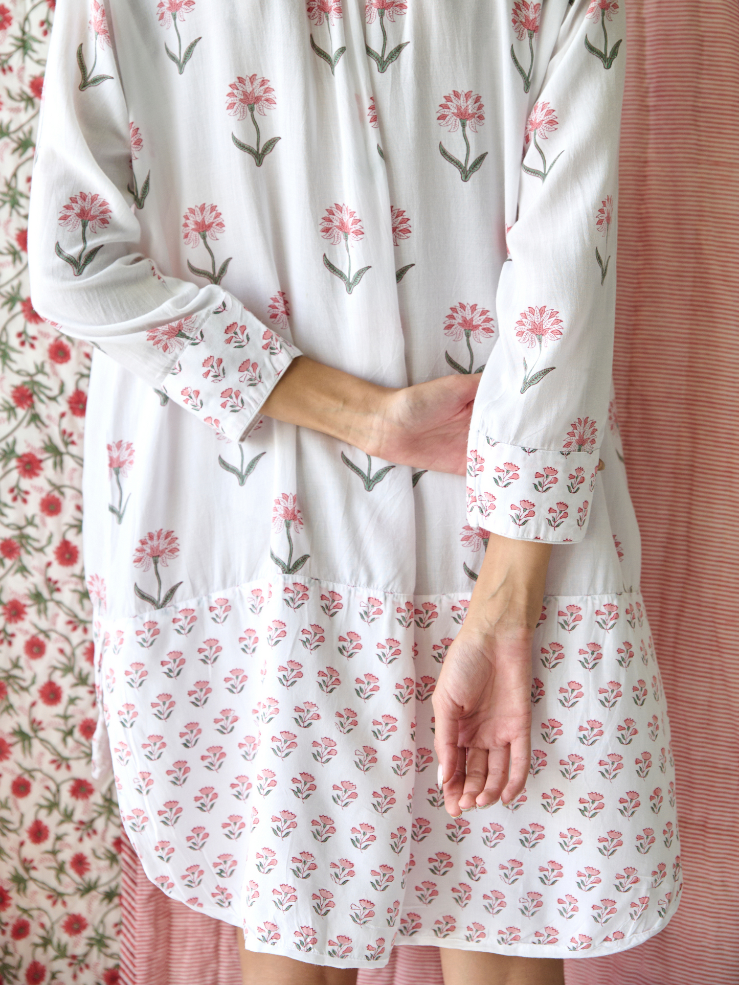 • Print: Hand block-printed floral pattern