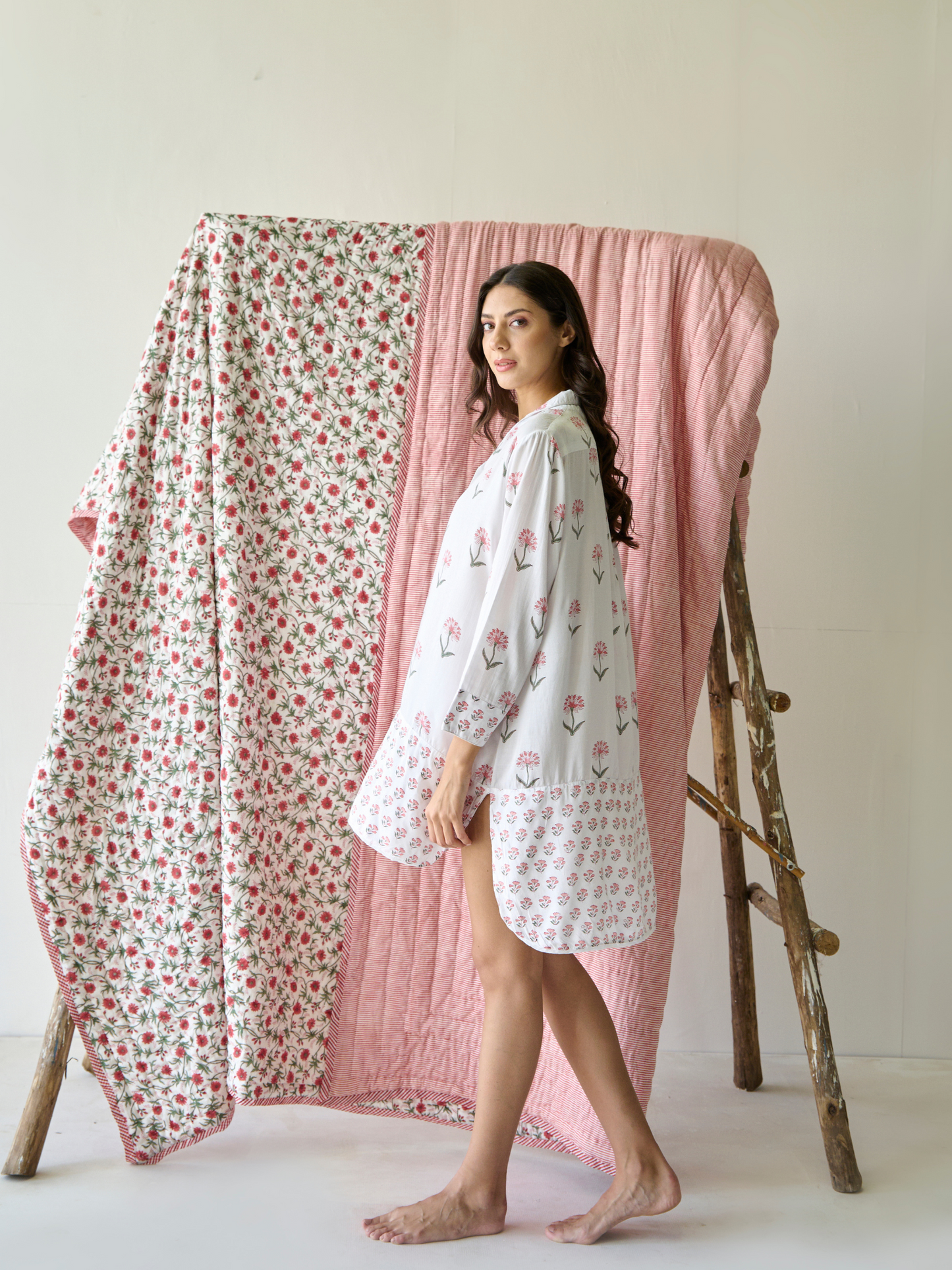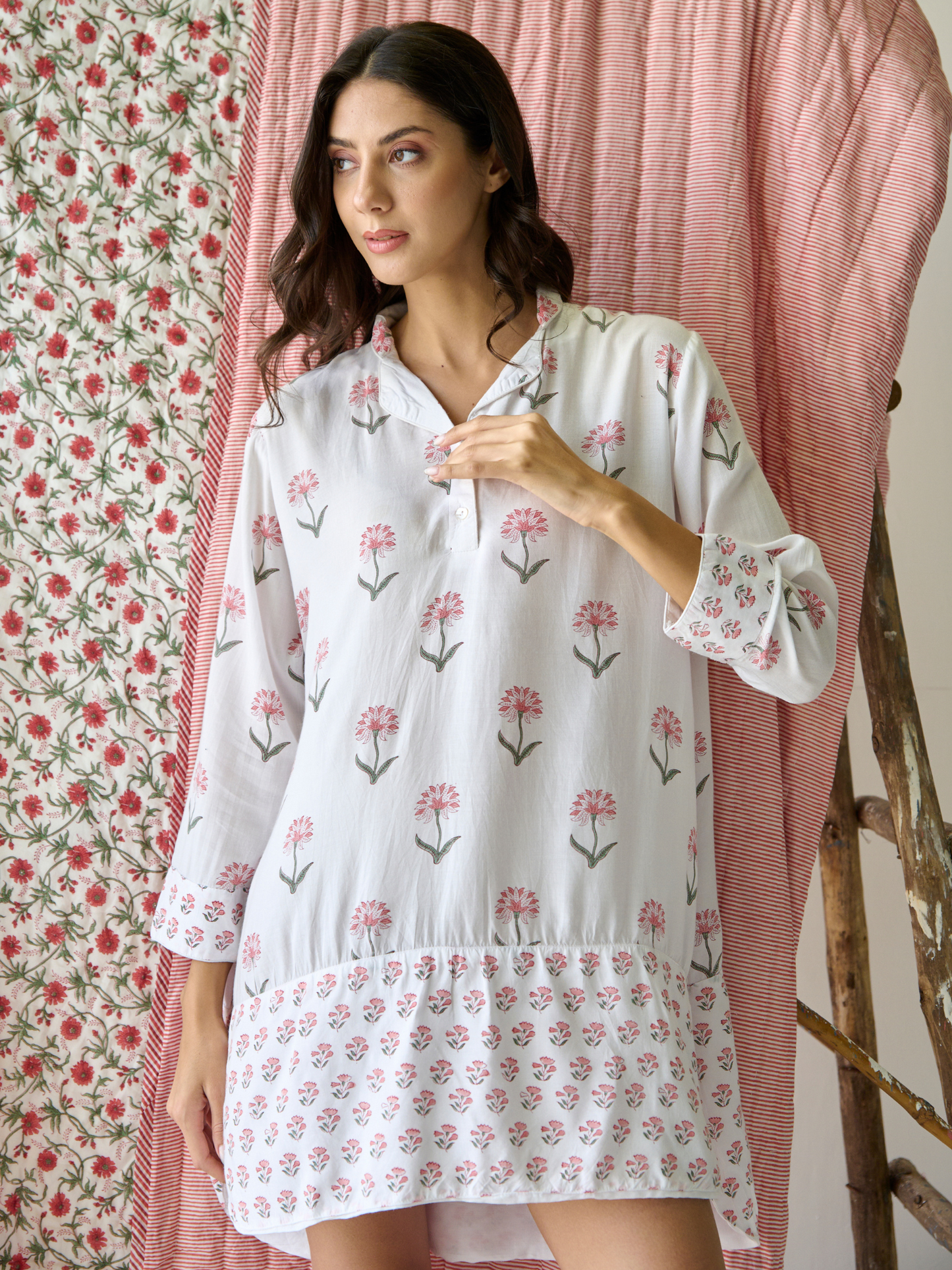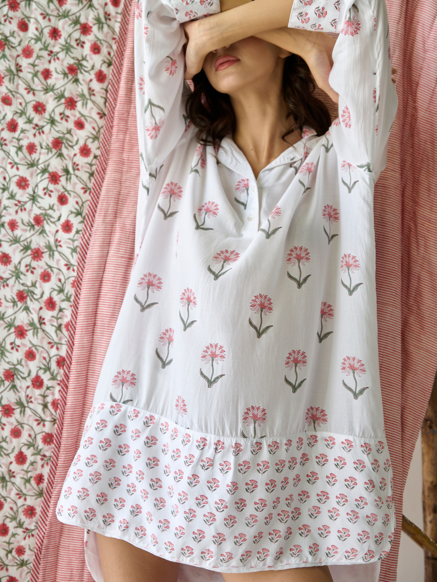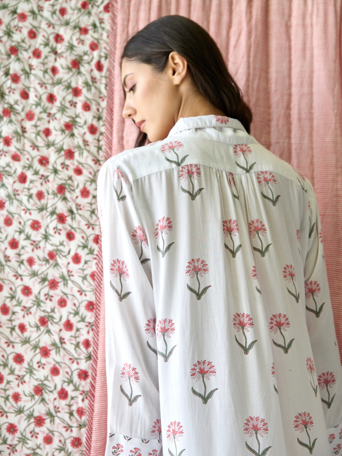 • Print: Hand block-printed floral pattern
