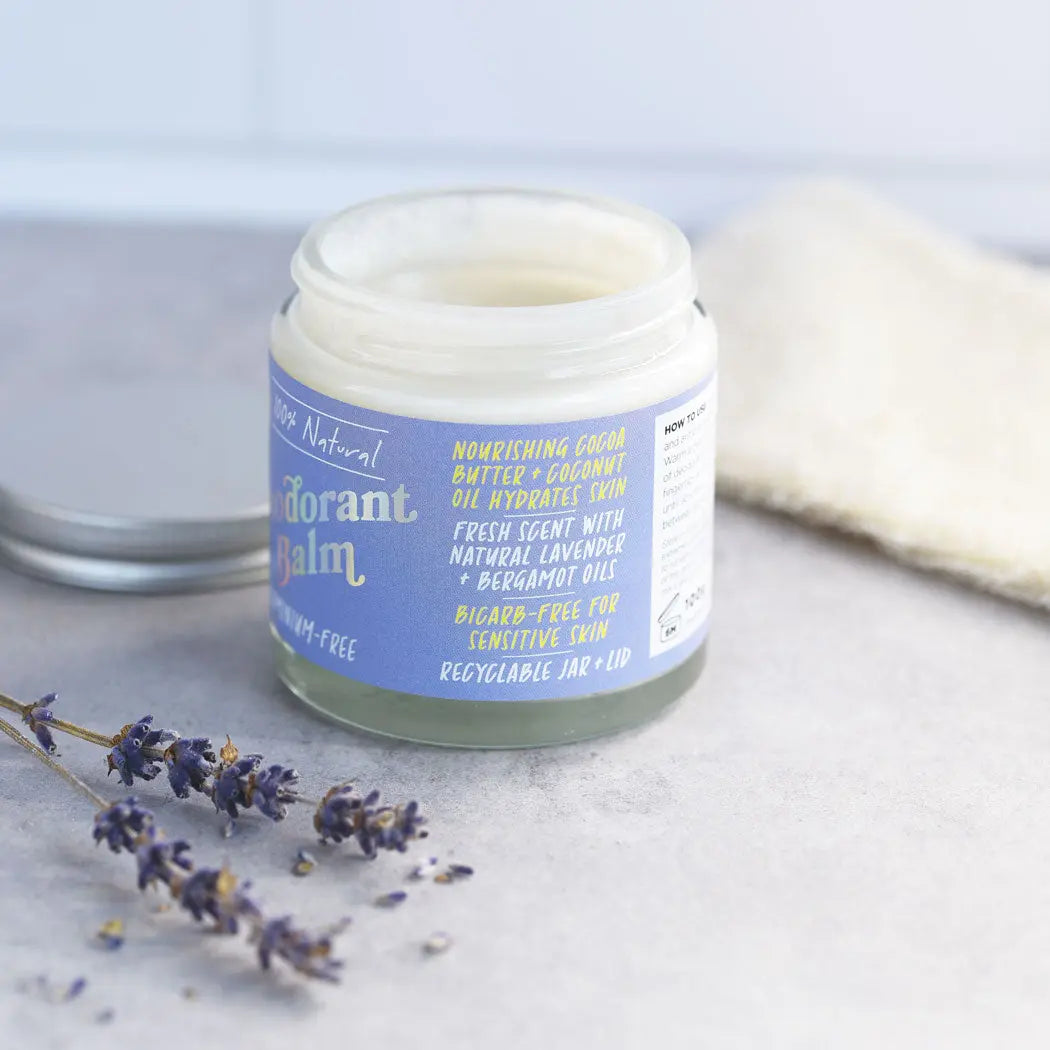 A natural, vegan, aluminium-free deodorant balm with a soothing lavender and bergamot scent.