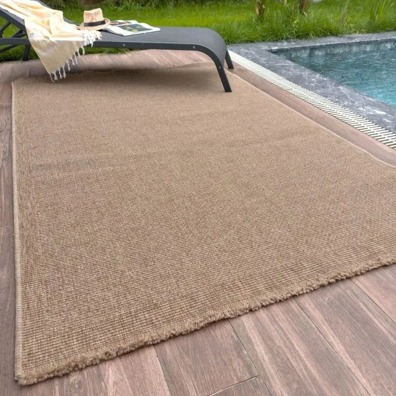 Unlike traditional jute rugs, our rug has a soft and comfortable pile that does not shed or fray like jute rugs. Jute rugs are hard to maintain and have a rough texture, but our rug is very easy to maintain and water-resistant. Additionally, our outdoor rug is more affordable compared to jute rugs.