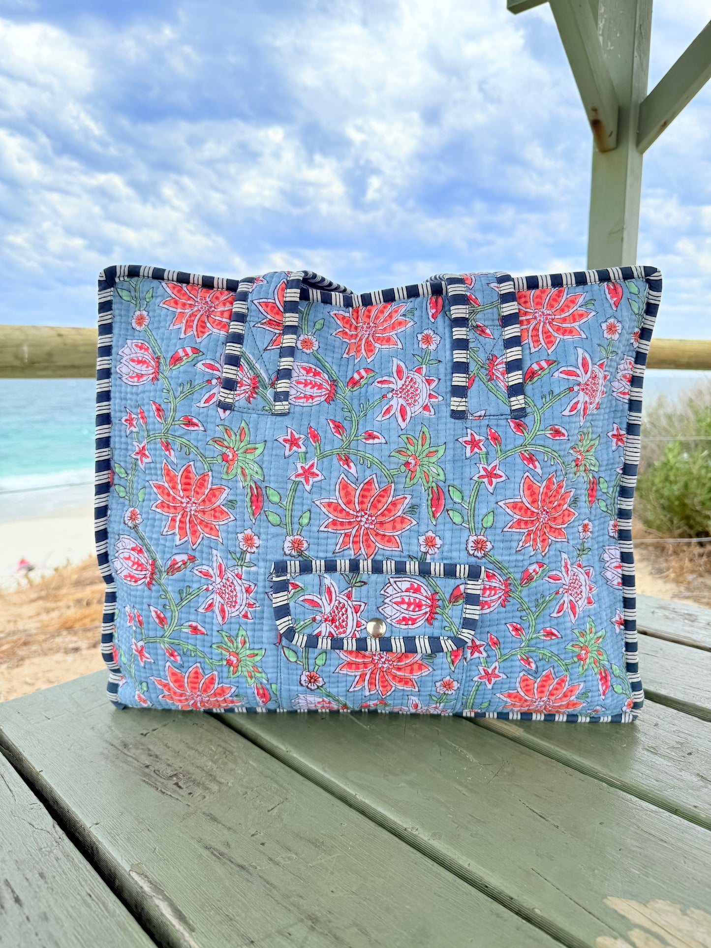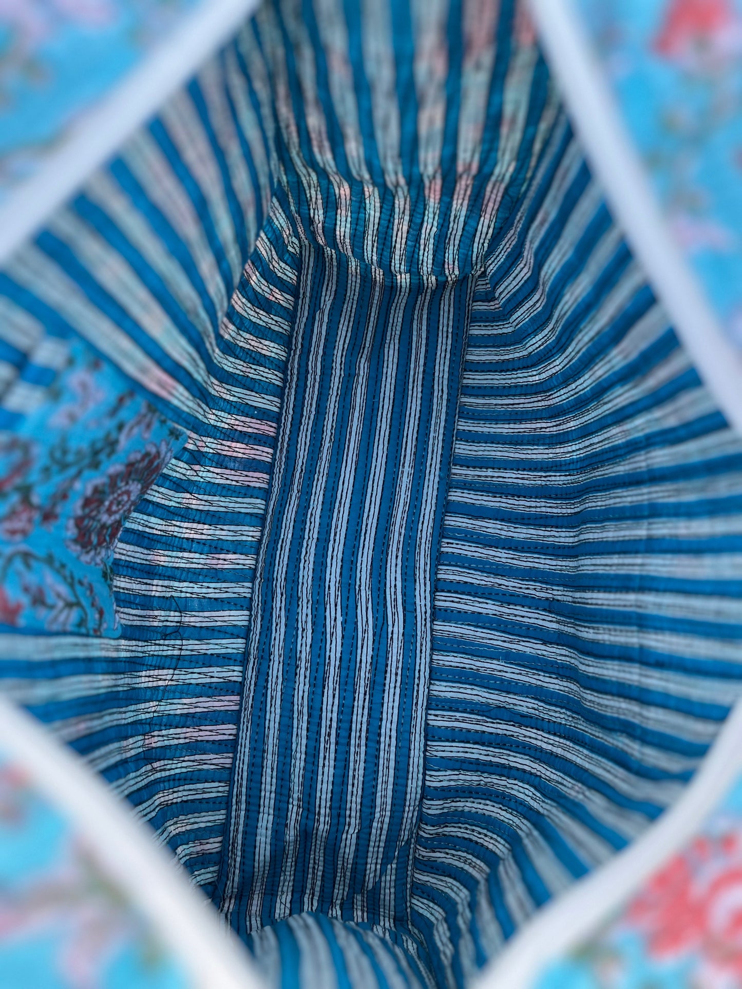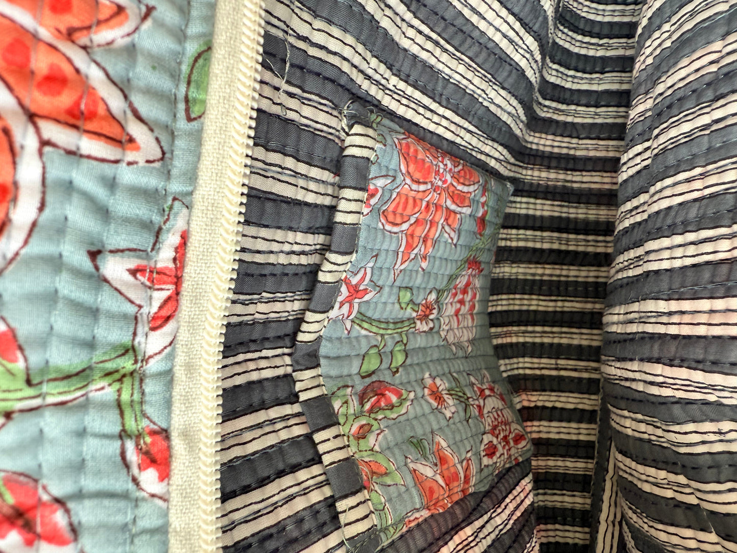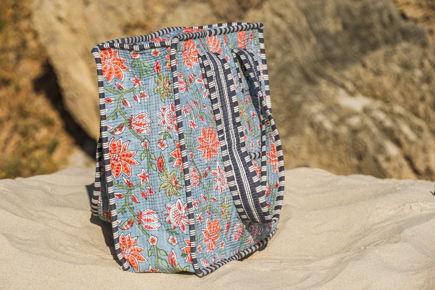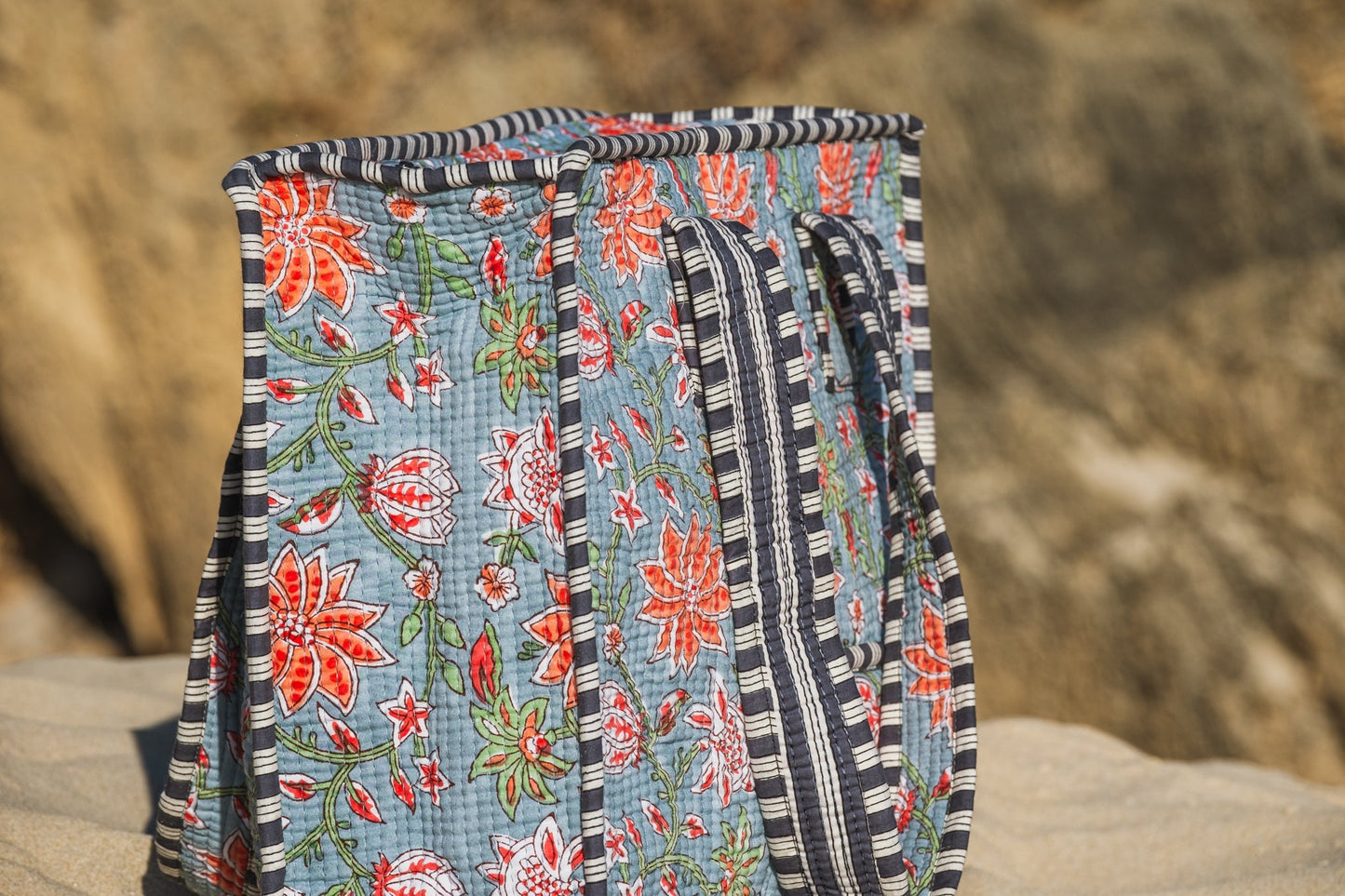 Meet your eco-conscious companion โ our Quilted Cotton Tote Bag, hand-blocked with love by our team in India! ๐ฟ Ditch those plastic bags and step into sustainable style. This beauty isn't just good for the planet; it's a fashion statement on it's own.