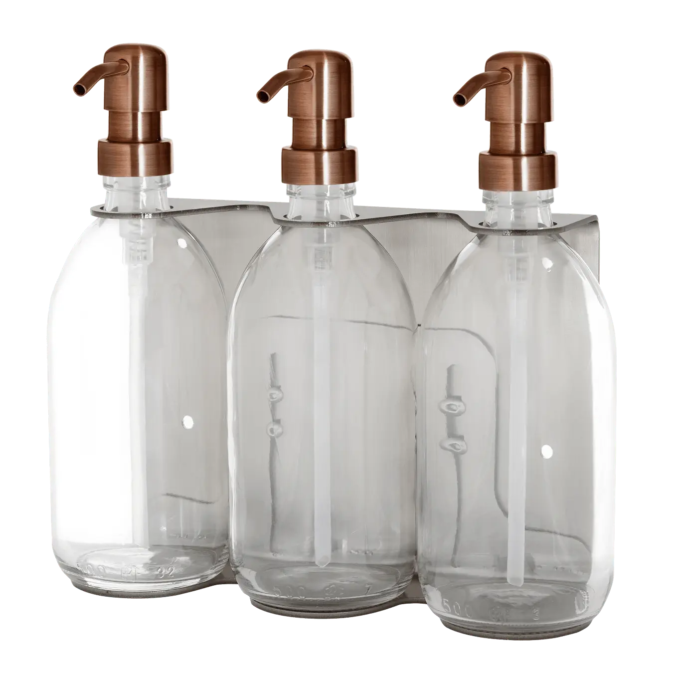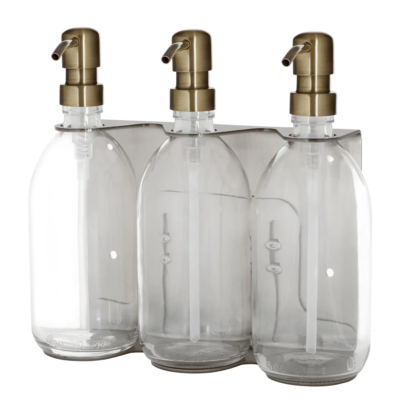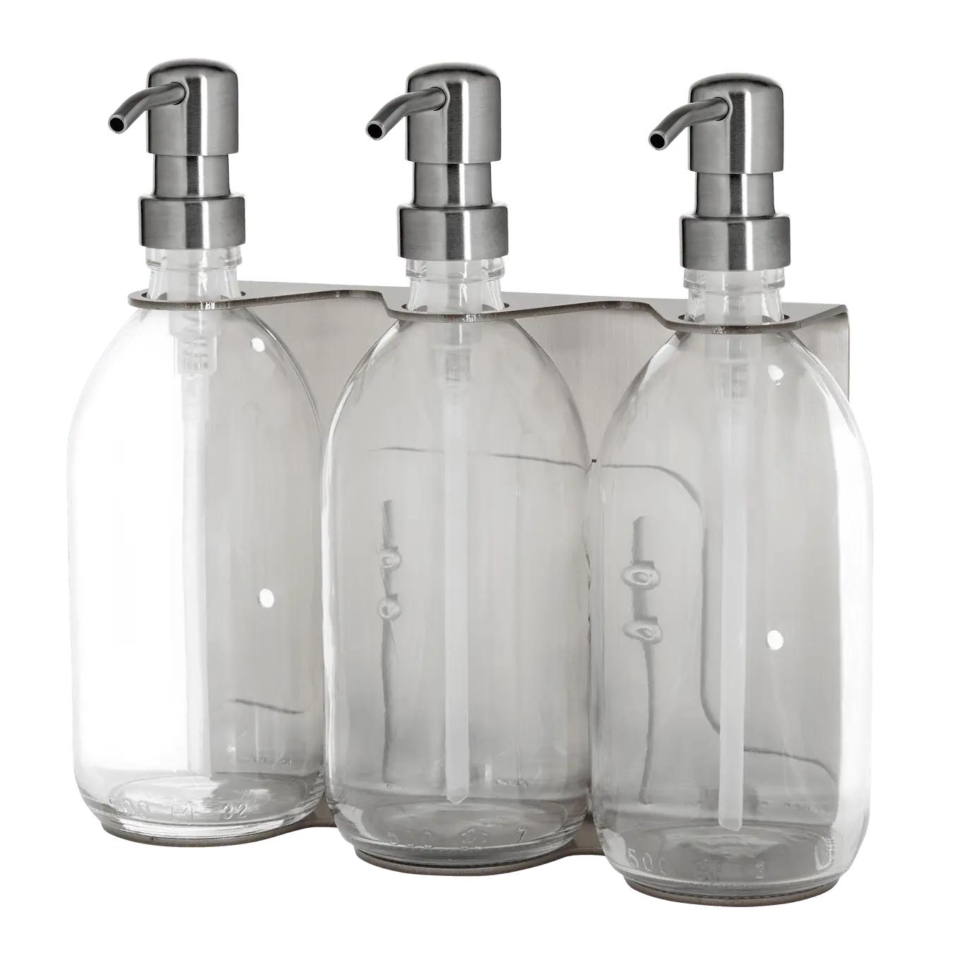 Keep everything you need within easy reach with our modern nickel triple wall-mounted soap dispenser. Designed to optimise space and bring a clean, contemporary look to any bathroom or wash space, it features three refillable glass bottles – ideal for hand wash, shampoo, conditioner, or body wash.