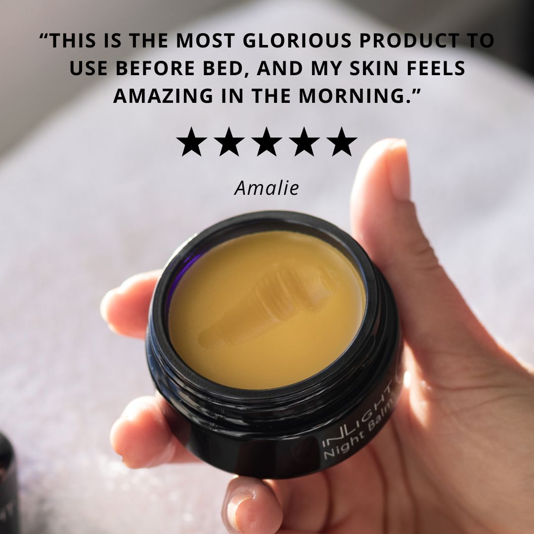 Inlight organic Night Balm is a blend of highly nourishing oils and soothing botanical extracts. Our skin repairs and regenerates overnight so give it a nutrient rich formula to aid healing, decrease inflammation, and restore hydration. Sesame, sunflower and evening primrose oils bring powerful antioxidant action whilst macadamia and jojoba synchronize with our skin's natural sebum to balance oil production.