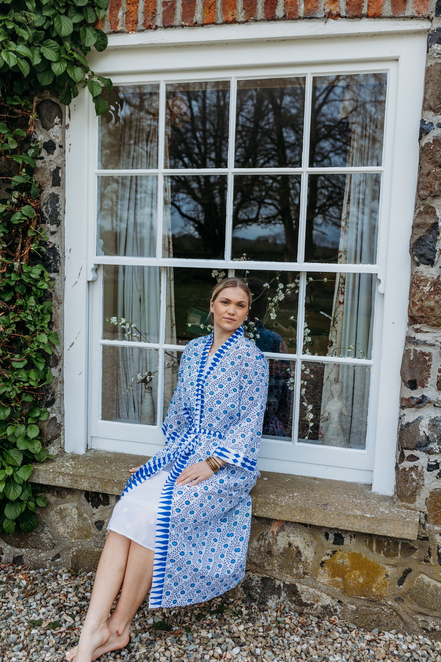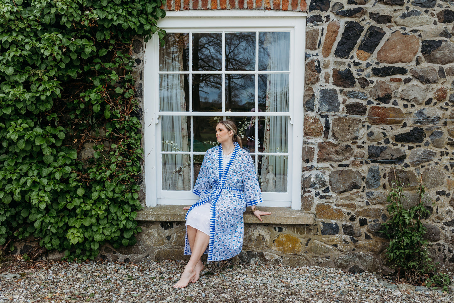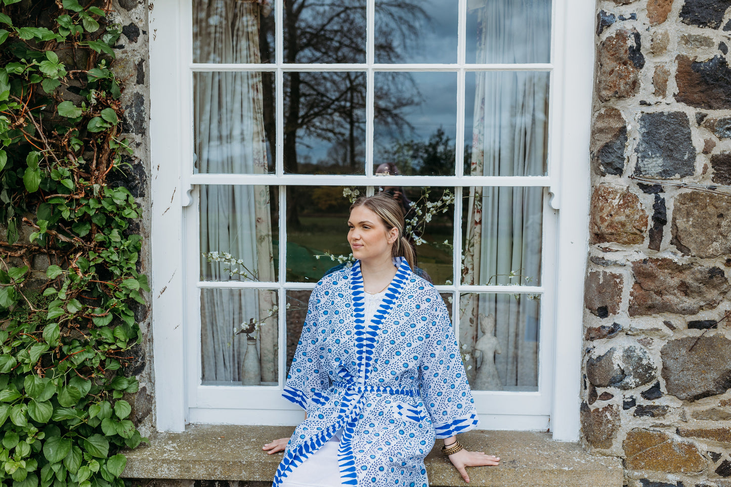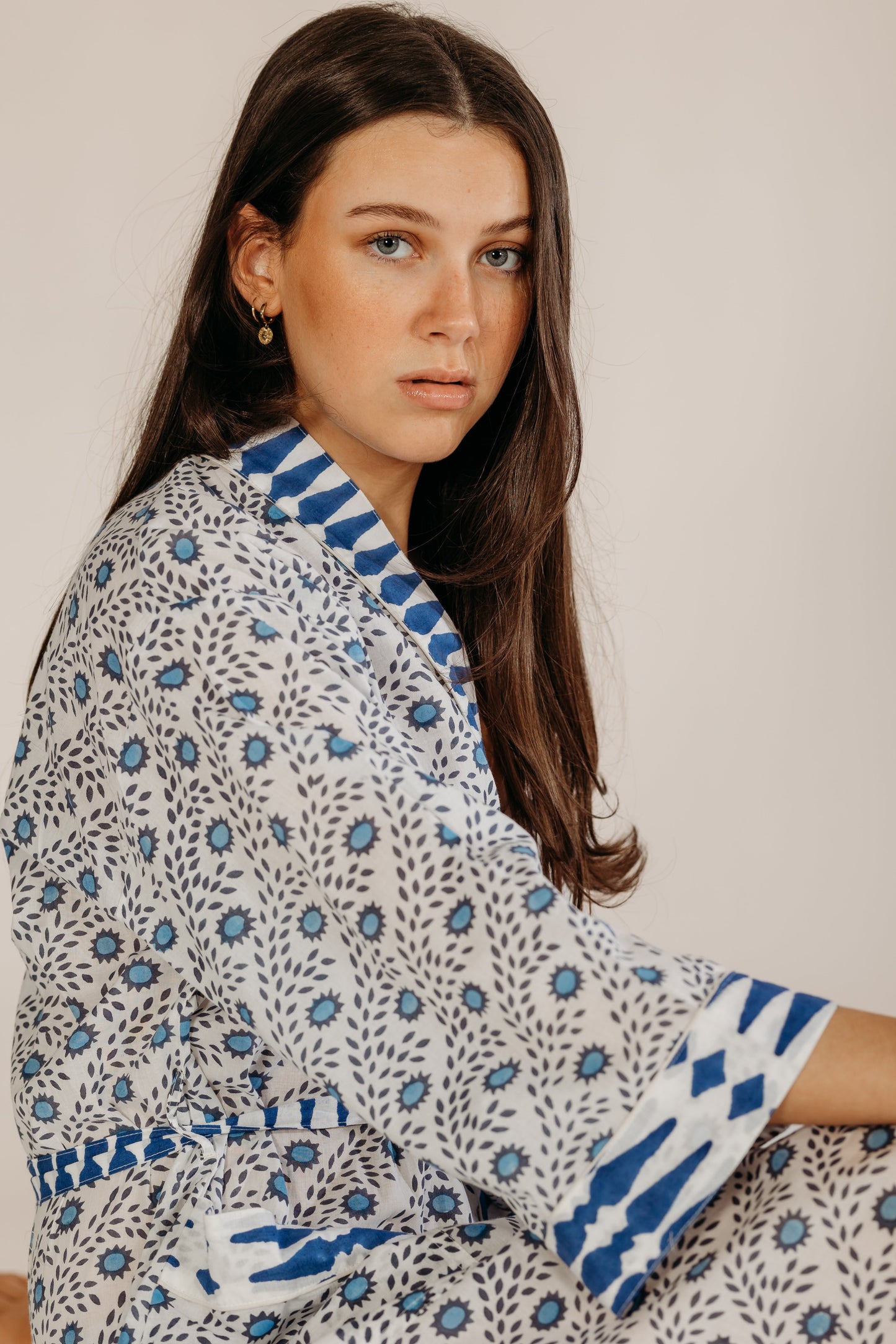 Wrap yourself in comfort with our hand block printed cotton robe, made from 100% natural fabric by our small team in India. Perfect for summer holidays, it's like taking a friend on holiday. This generously sized robe features two front pockets and makes an ideal bridesmaid gift. Versatile and stylish, it's great for lounging, beach cover-ups, or post-bath relaxation.Hand block printed by our small team in India