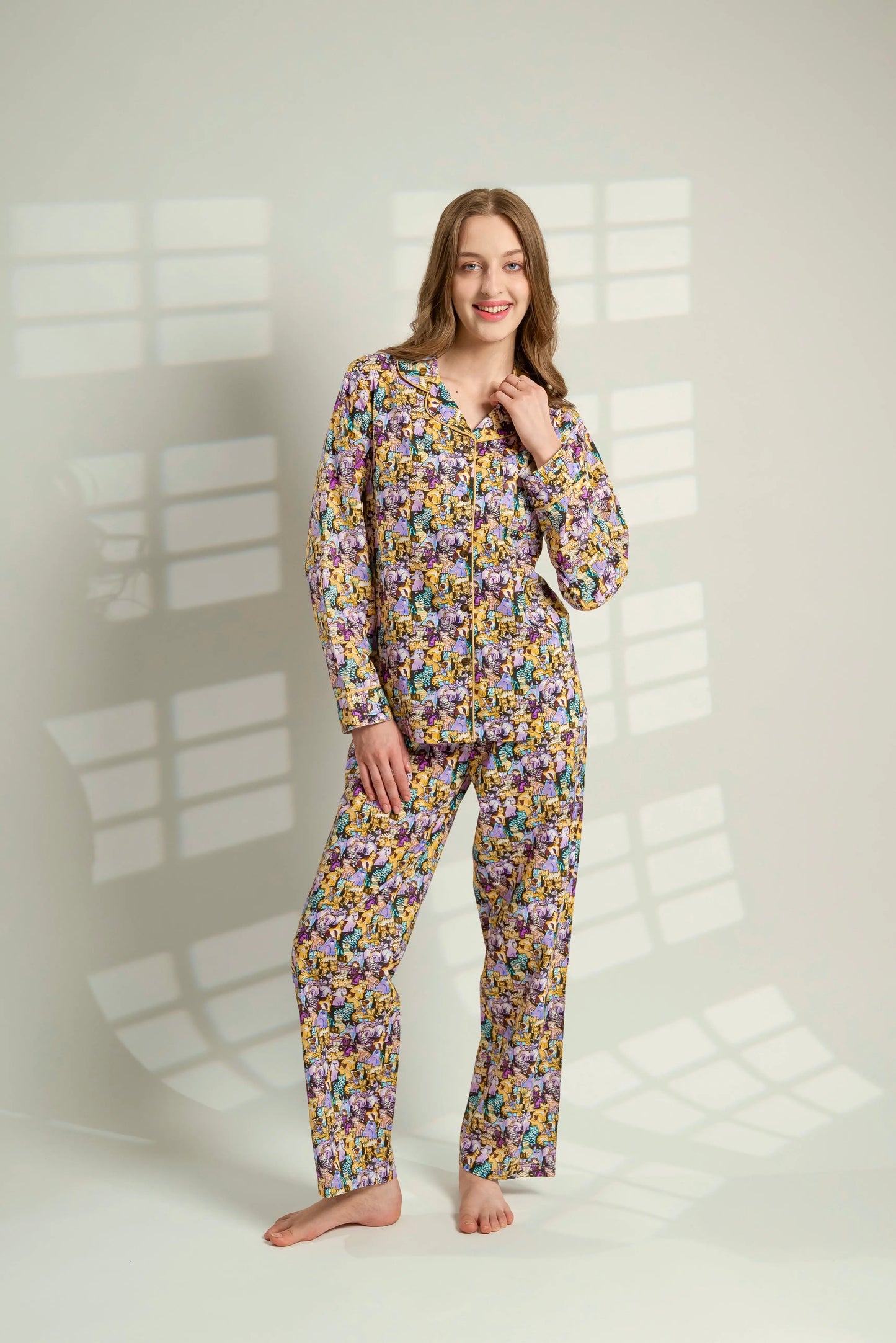 Soft, playful, and perfectly balanced — these cat print pyjamas are made for cosy nights and relaxed mornings.