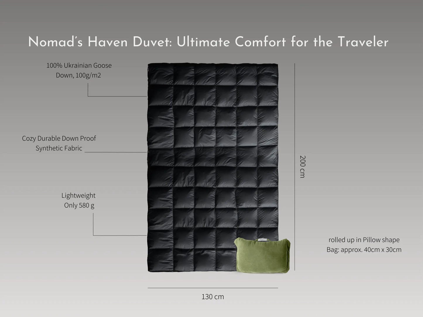 Ideal for Every Scenario: Whether catching a flight, camping under the stars, or just lounging at home, the Nomad’s Haven Duvet brings the warmth and comfort of home along with you.