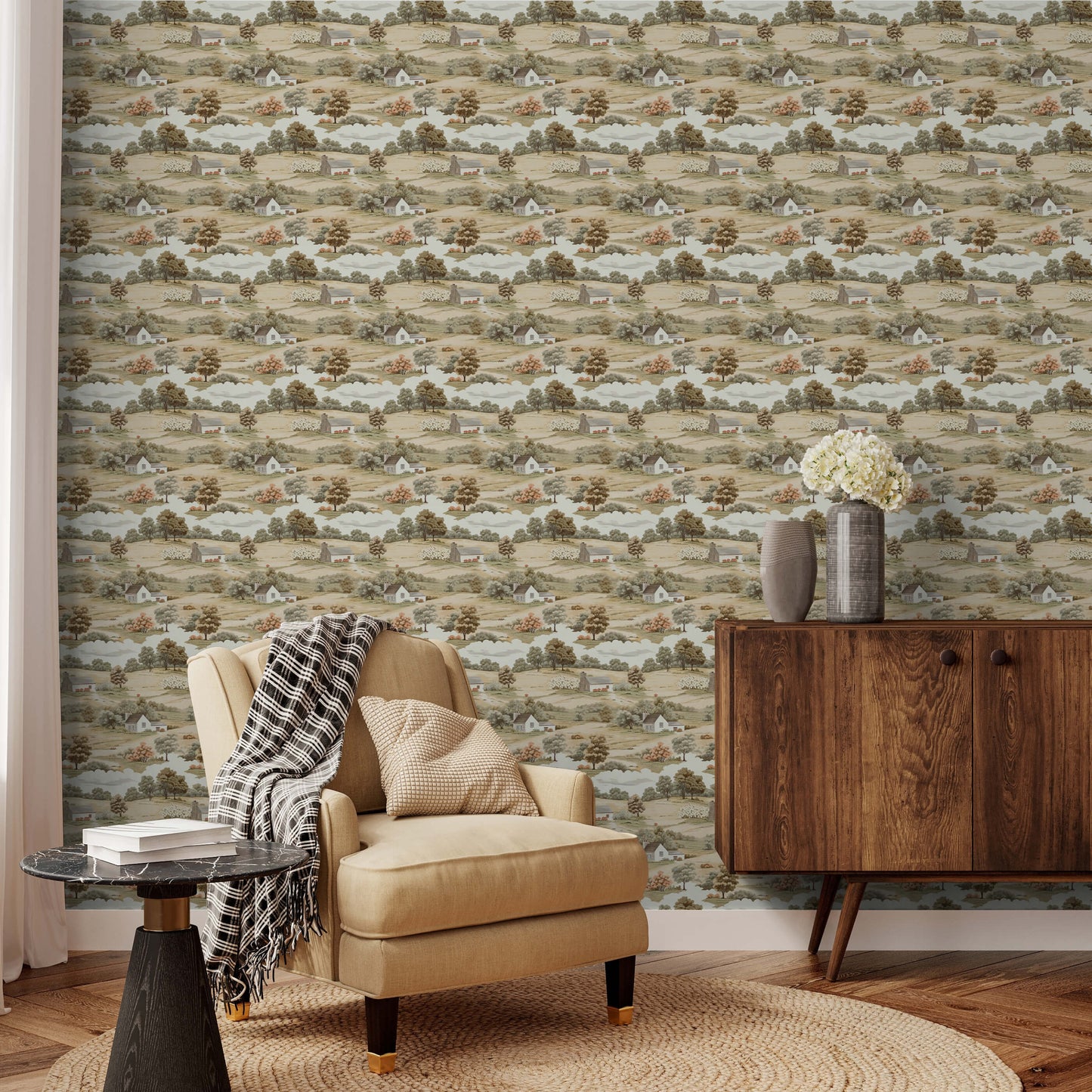 Bring the beauty of open landscapes indoors with our countryside hills wallpaper. Rolling hills under a vast sky create a sense of spaciousness and freedom, fostering a calming atmosphere in your home.