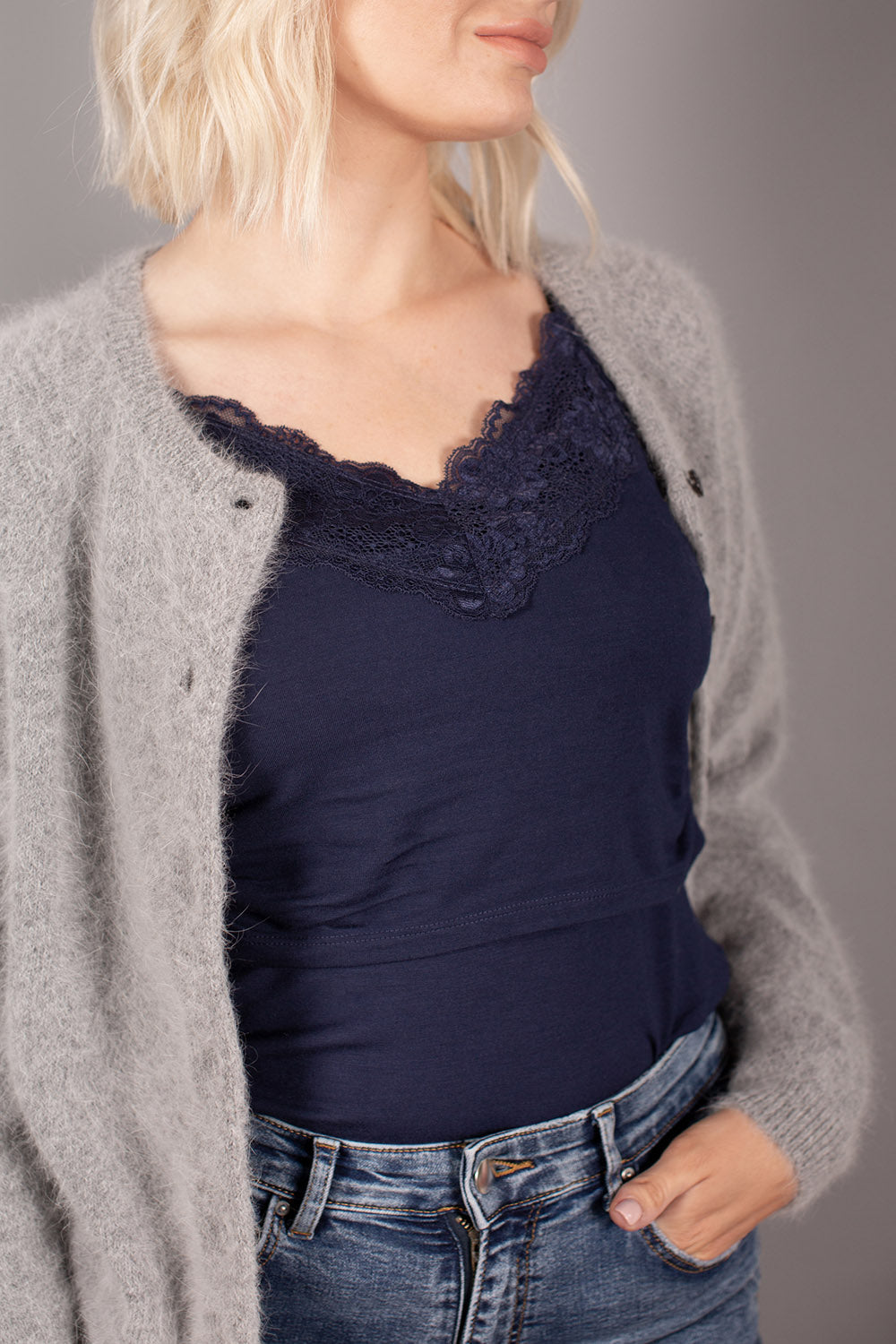 Crafted from luxuriously soft organic cotton, this midnight cami blends fashion with functionality. Elevate your nursing wardrobe with this stylish essential, offering ease and sophistication at every stage of motherhood.