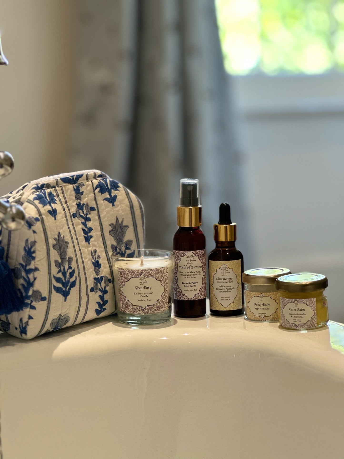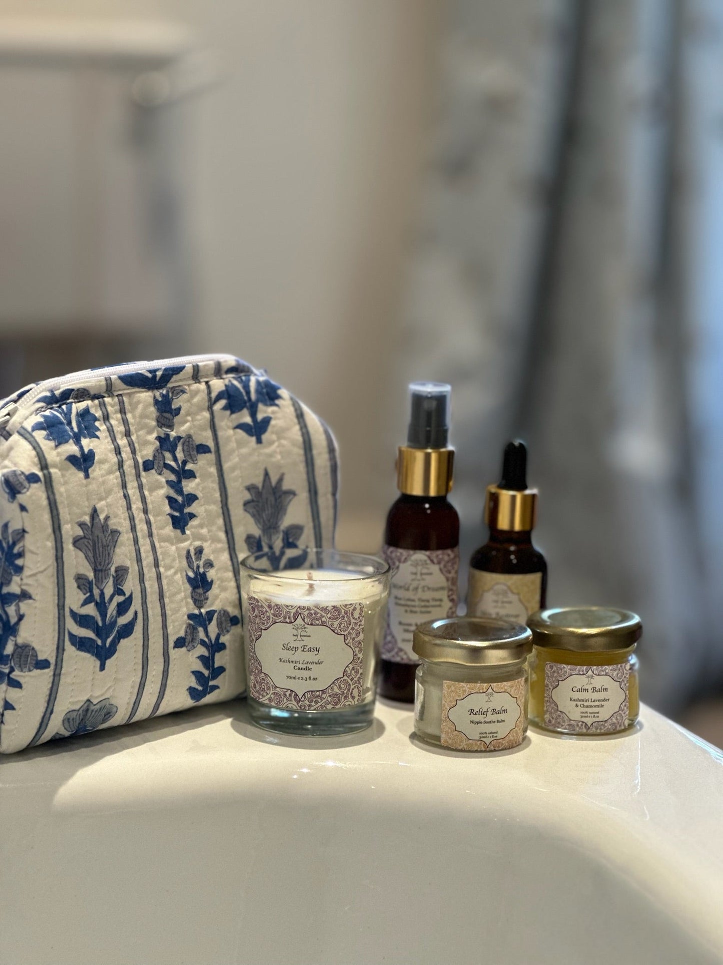 Each item is made with love and care using only natural ingredients – safe for mum and baby alike. The reusable, block printed pouch adds a touch of artisan charm, making this a truly special gift for any expectant mother.