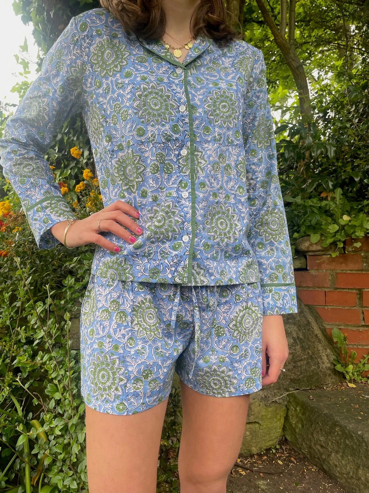 Our block printed pyjama sets are handmade in Jaipur. The fabric is hand printed so please allow for discrepancies in designs as each set is unique.