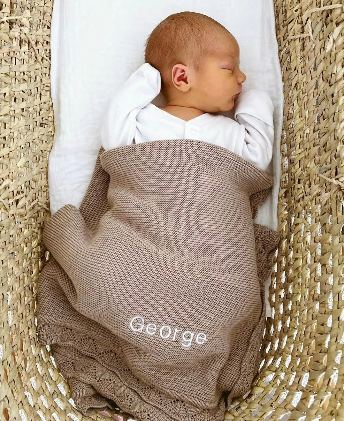 - Name: George / Blanket: Oat / Embroidery Thread: White / Font: Standard