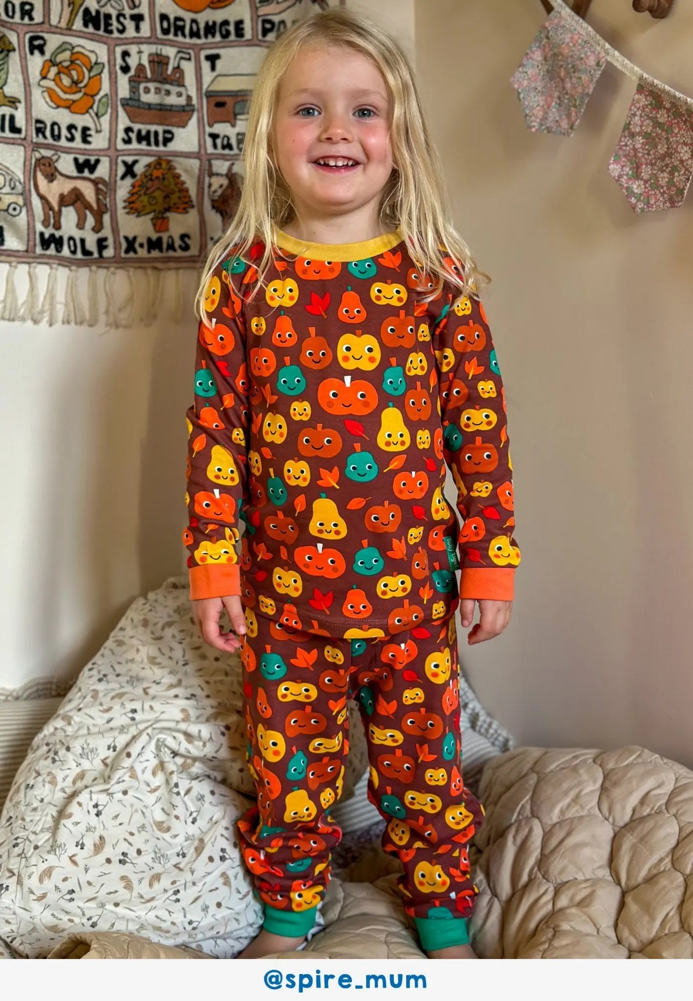 Regular price £14.99Snuggle up with our warm and toasty pumpkin print kids pyjamas – the softest organic cotton will keep your little pumpkin cosy all night long. And, if you love our pumpkin print, take a look at more of our Halloween-inspired organic children's clothes!