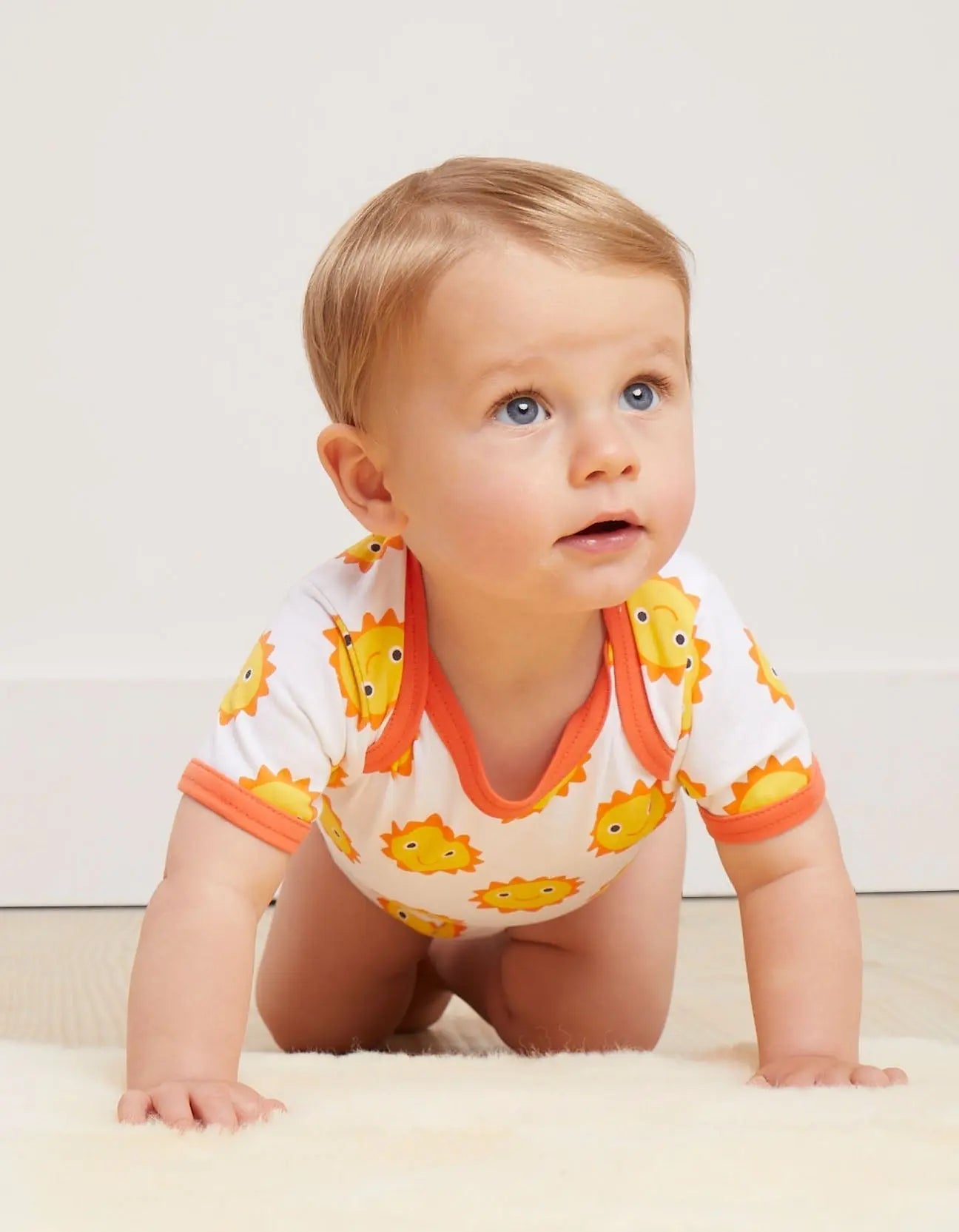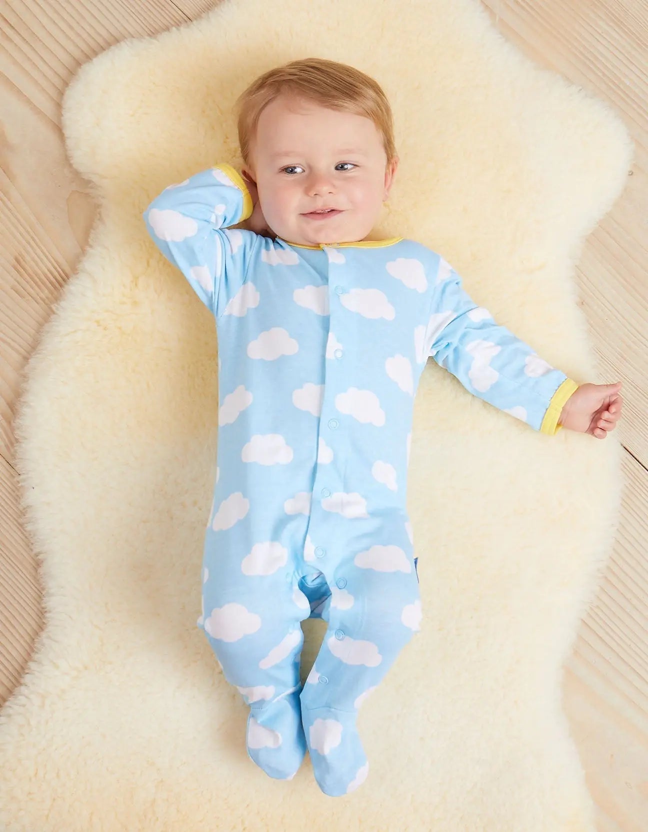 - Organic baby gift set featuring our sun cloud print baby sleepsuit, baby hat,drawstring bag and sunshine baby body.