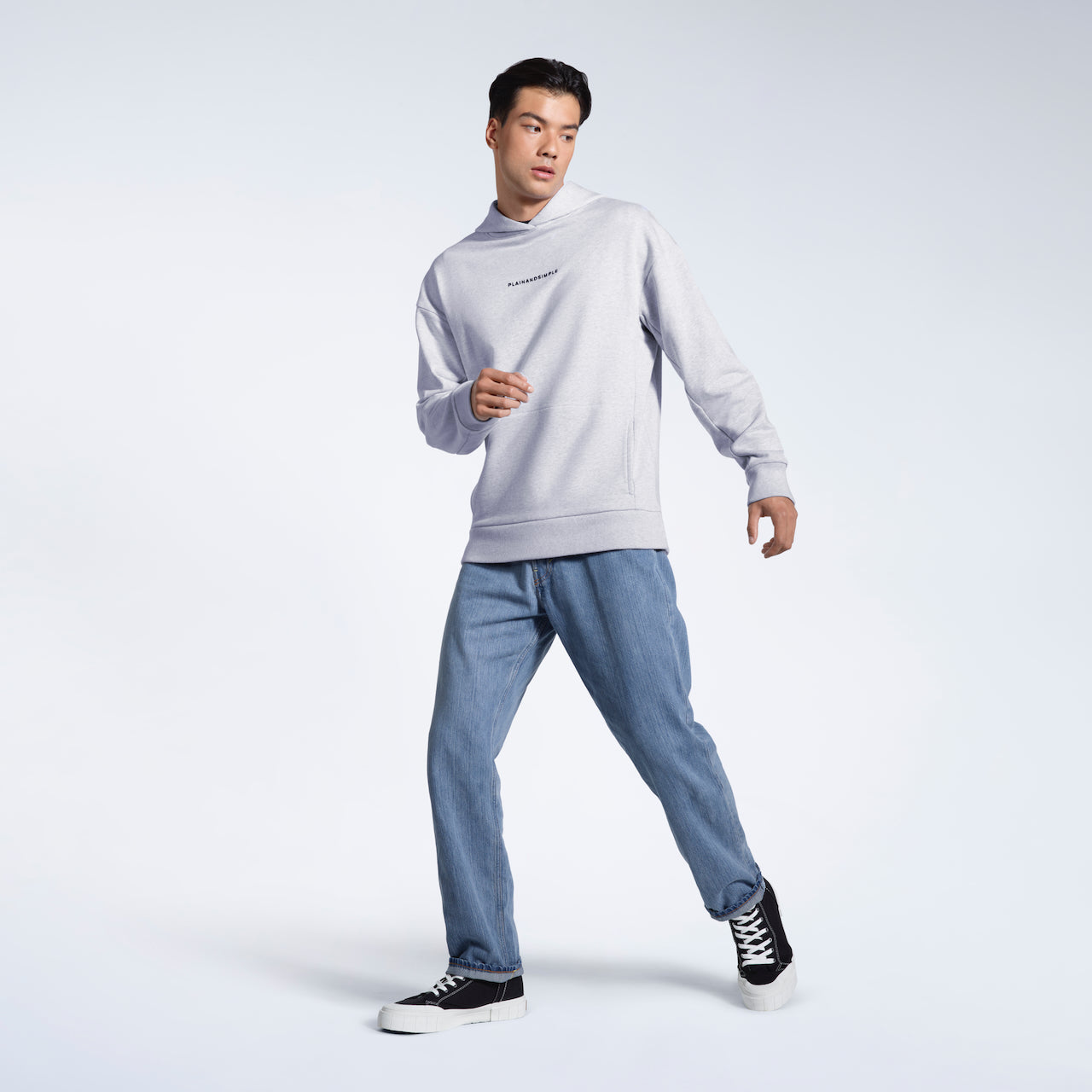 - Grey hoodie model: Height 6'2" (189 cm), wearing size M