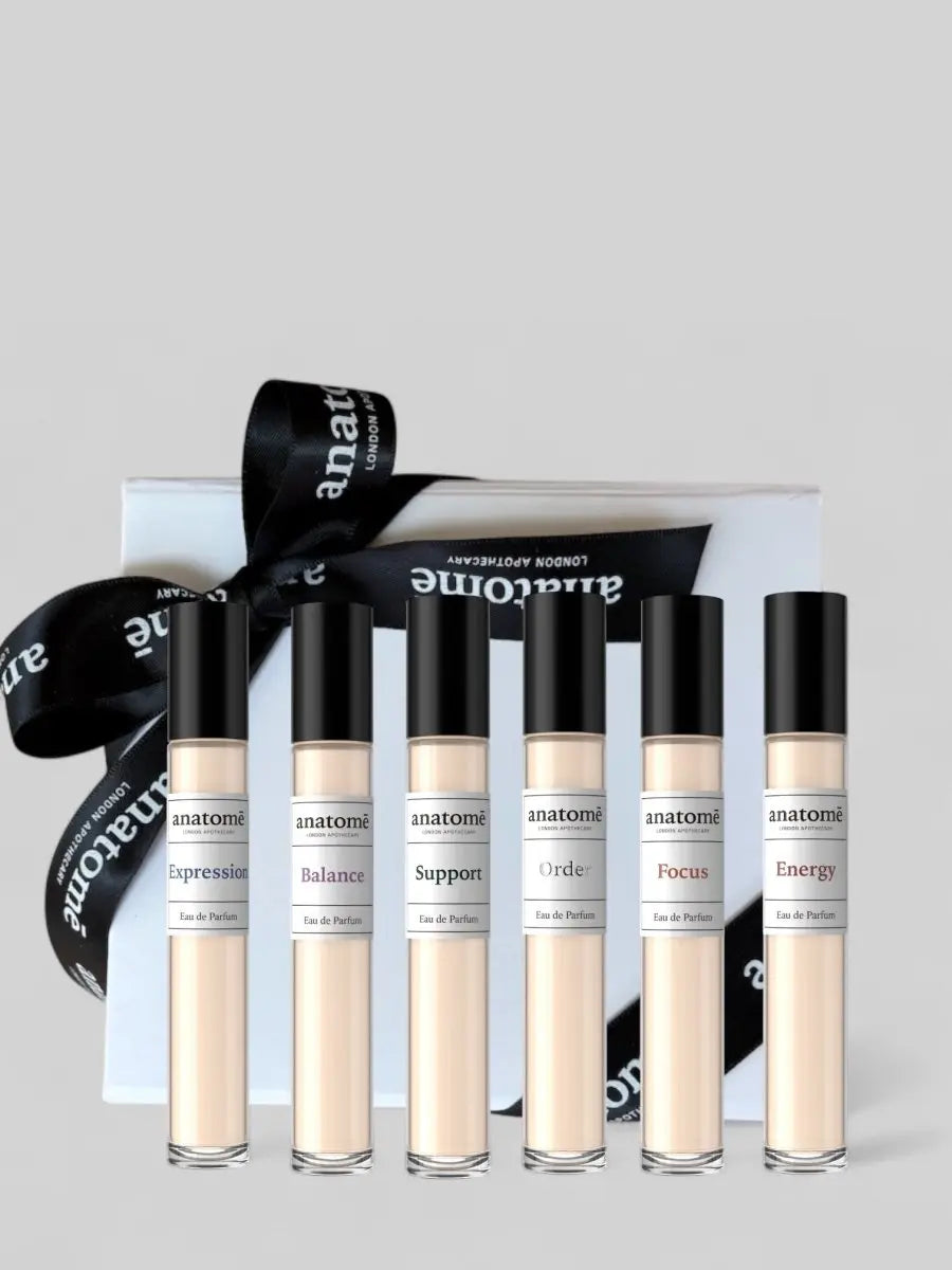 The anatomē Perfume Discovery Set is thoughtfully designed to support your wellbeing on the move, whether you’re travelling for work, leisure, or exploring new time zones. This curated set includes six signature perfumes — Expression, Balance, Energy, Order, Support, and Focus — each crafted to meet different emotional and physical needs while you travel.
