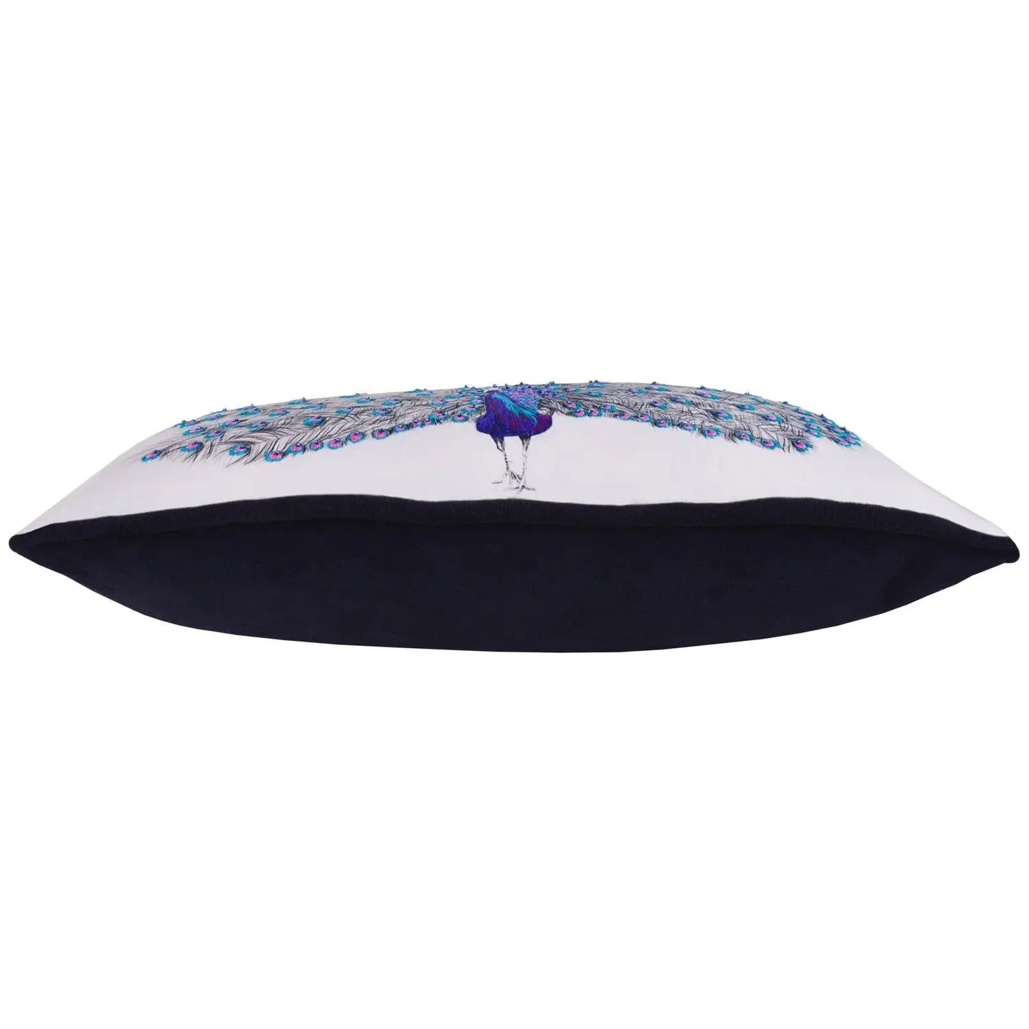 Luxury decorative Peacock cushion with hand embroidered and beaded detail.