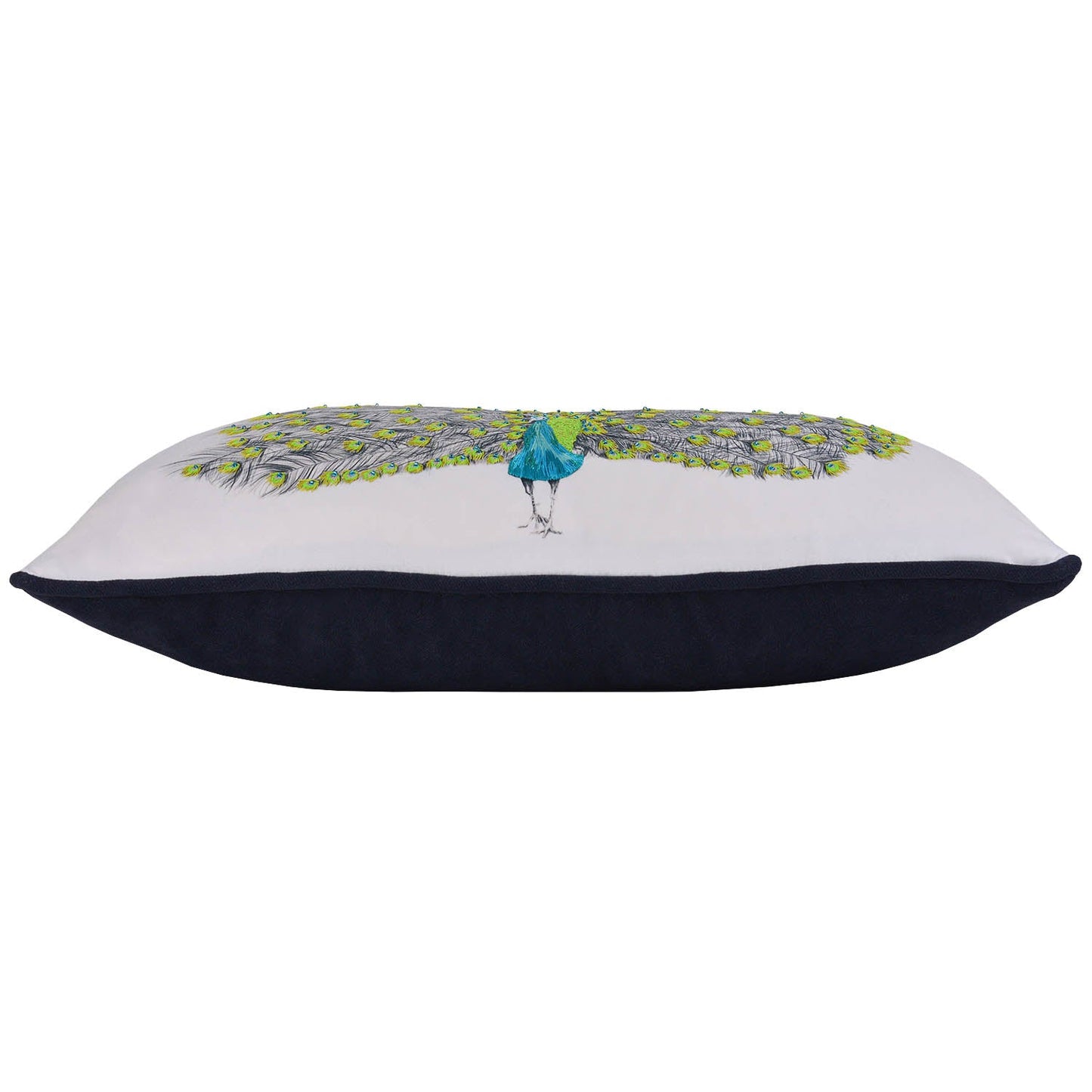 Luxury decorative Peacock cushion with hand embroidered detail.