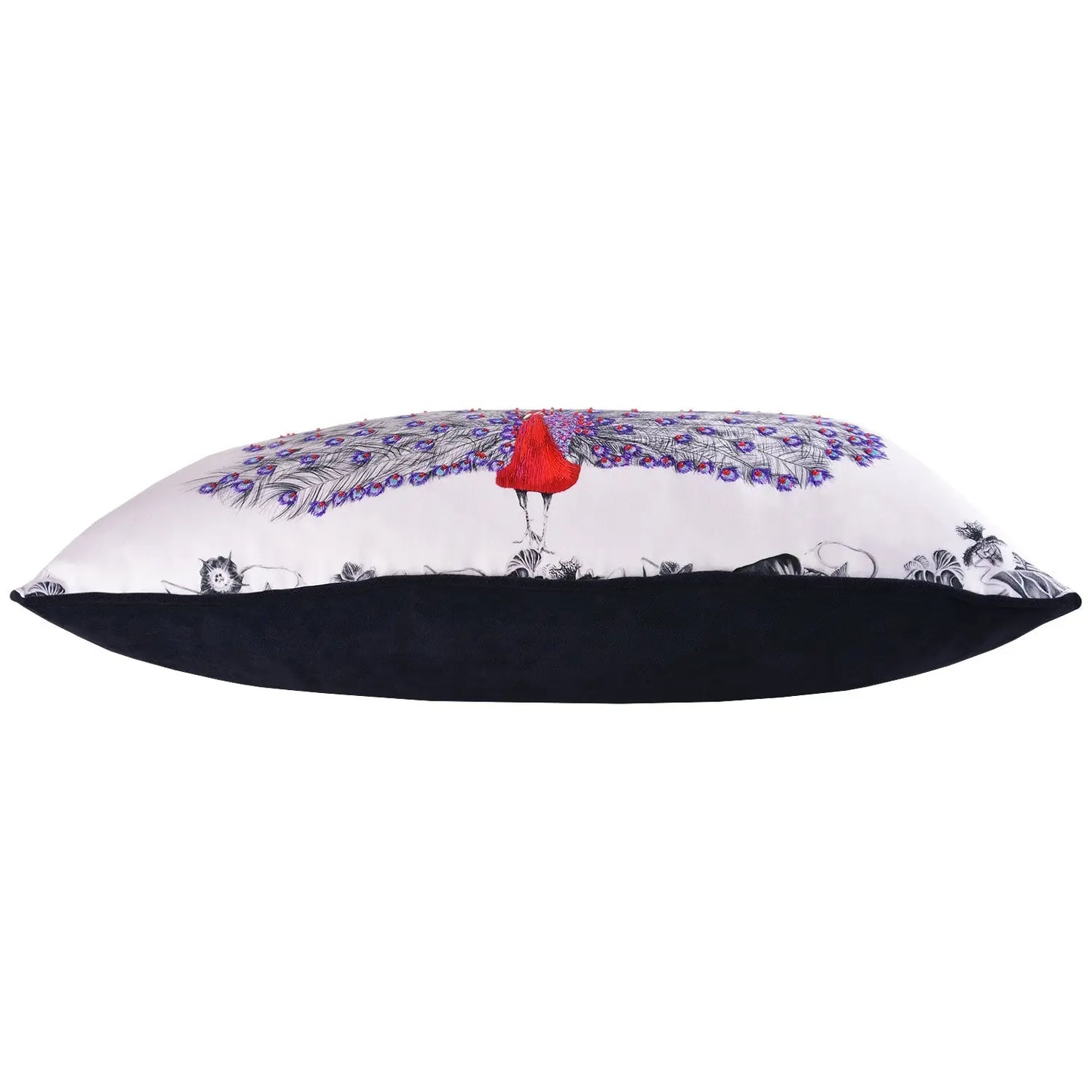 Luxury decorative Peacock cushion with hand embroidered detail.