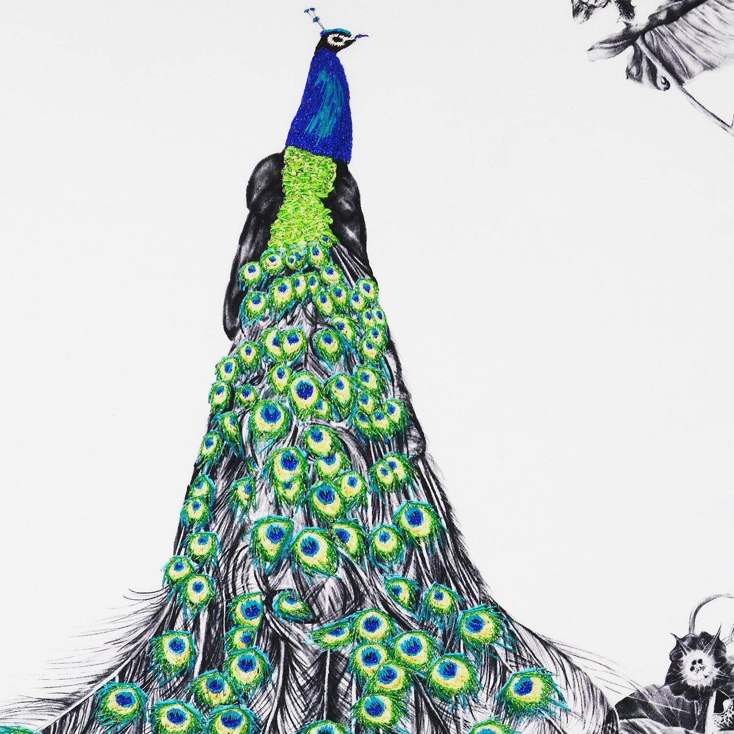 Luxury decorative Peacock cushion with hand embroidered detail.
