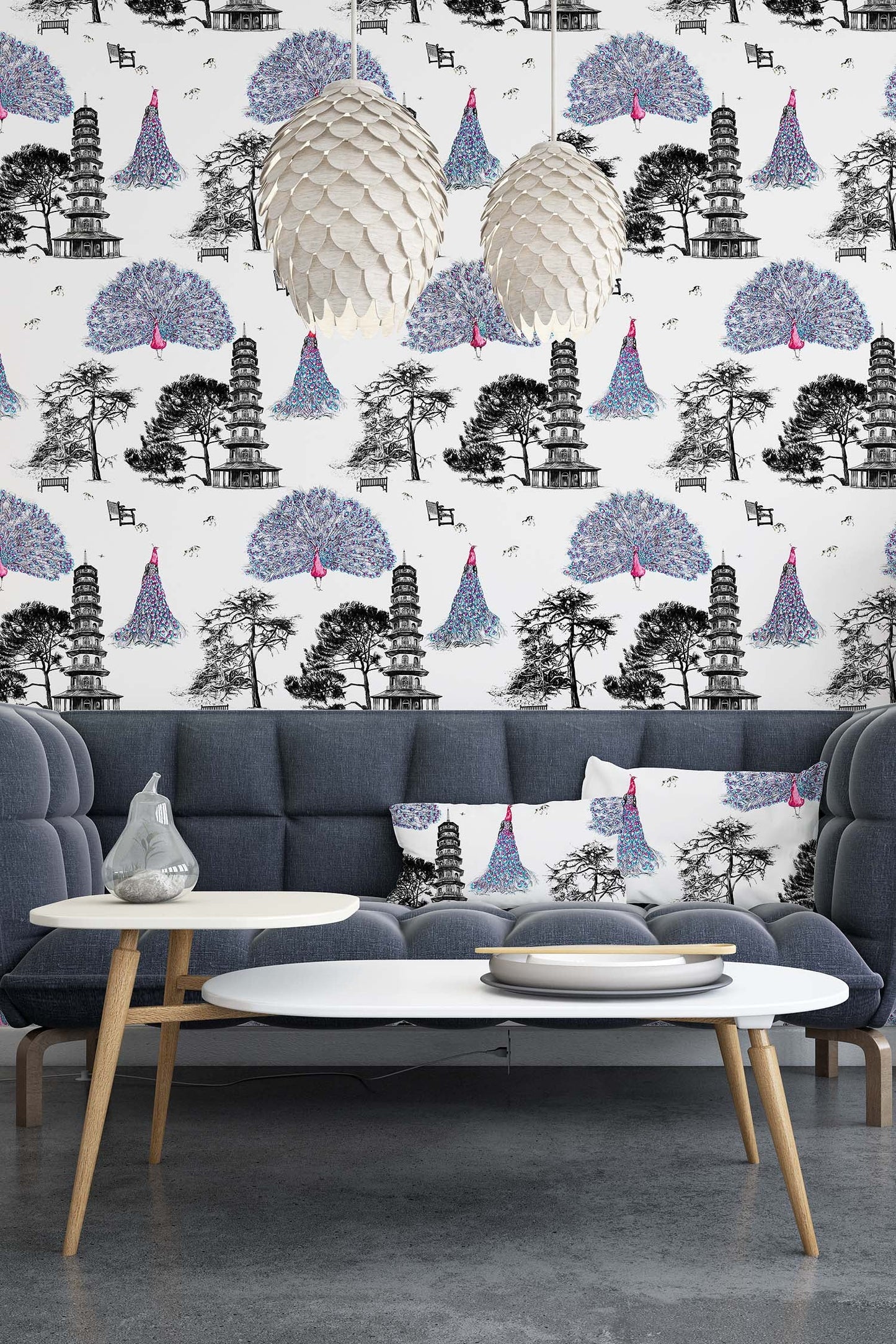 Pink Kew Peacocks Wallpaper.