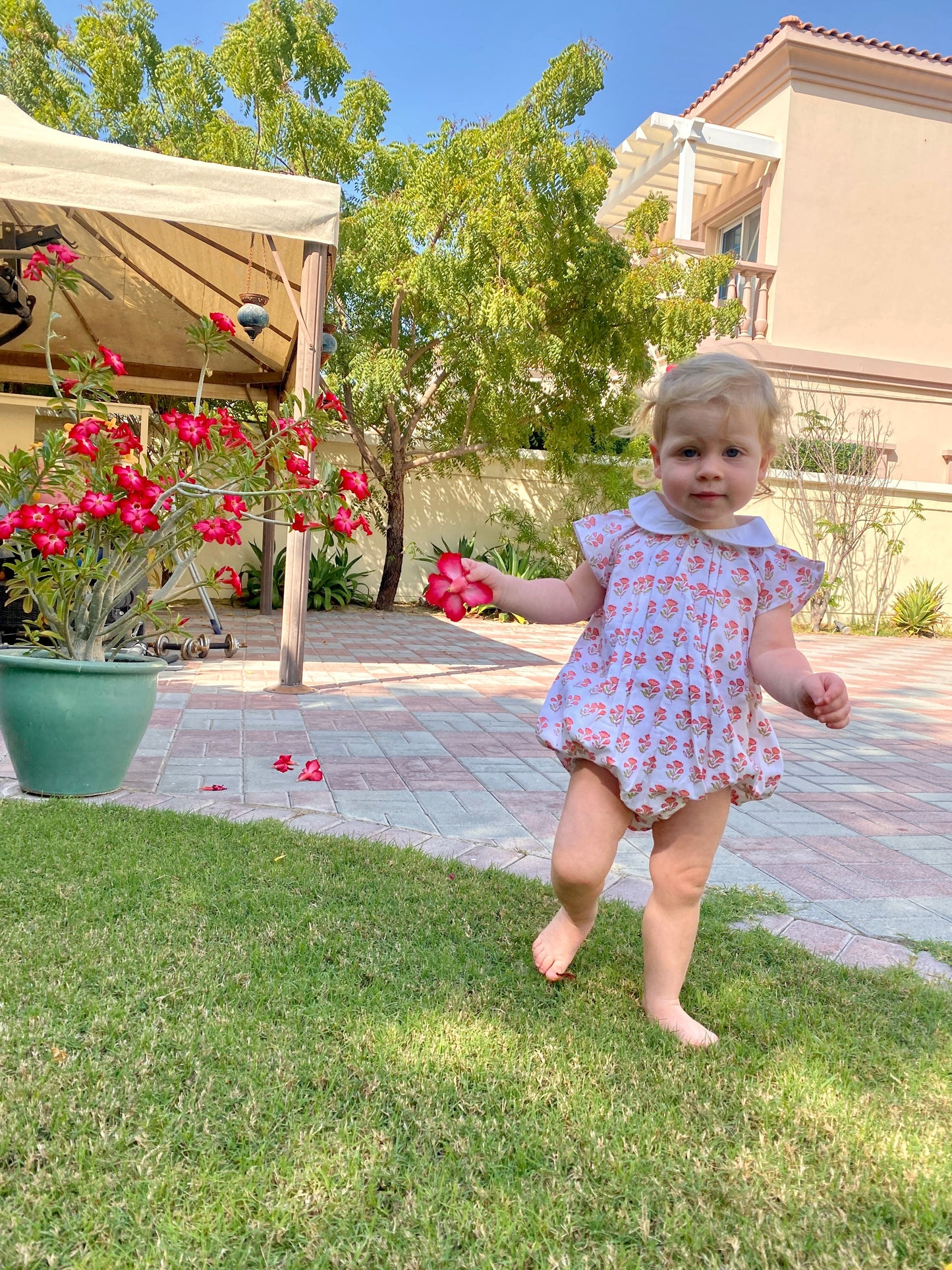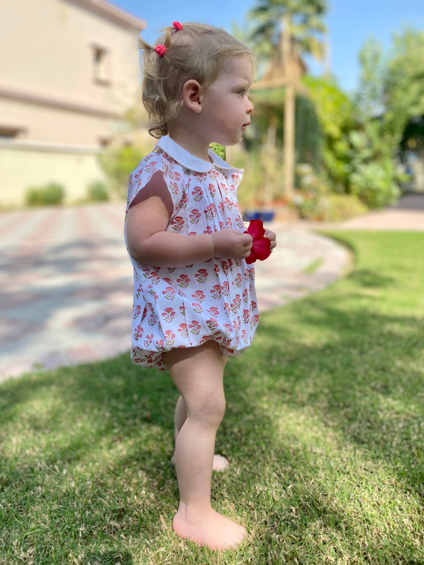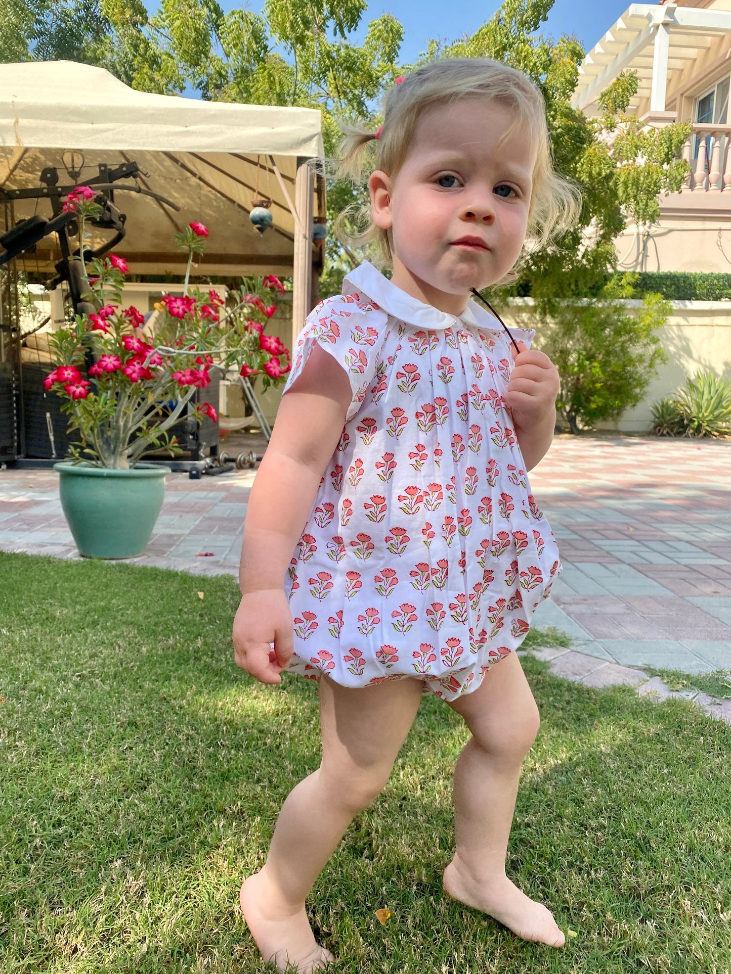 A really pretty girls romper new to the collection this Summer. The rompers are simple and sweet for everyday use in the Summer months and on holidays. The rompers are super versatile as well as being worn on its own they also look lovely under dungarees, shorts or a skirt.