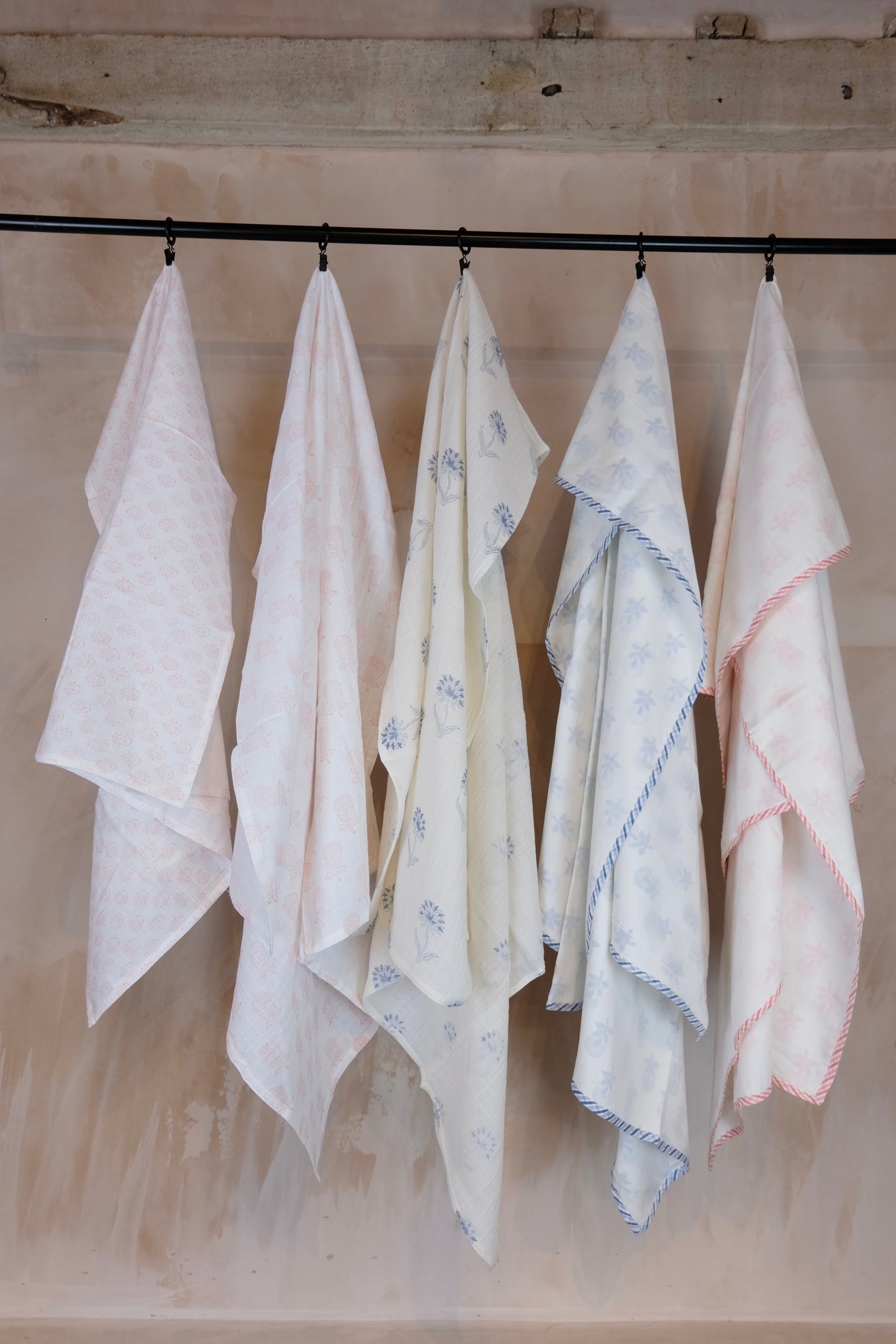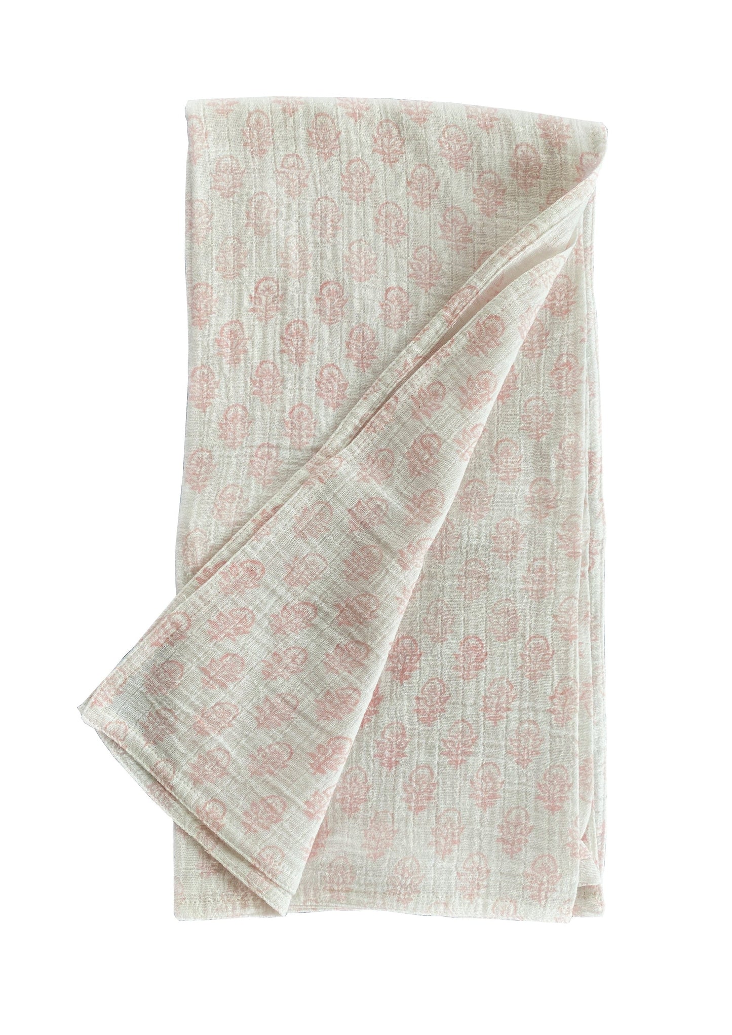 Large Block Print Muslin Square Our super soft square muslins have a pretty Indian floral hand block printed design throughout. They are gentle on your little ones skin and machine-washable making them ideal for every day use.
