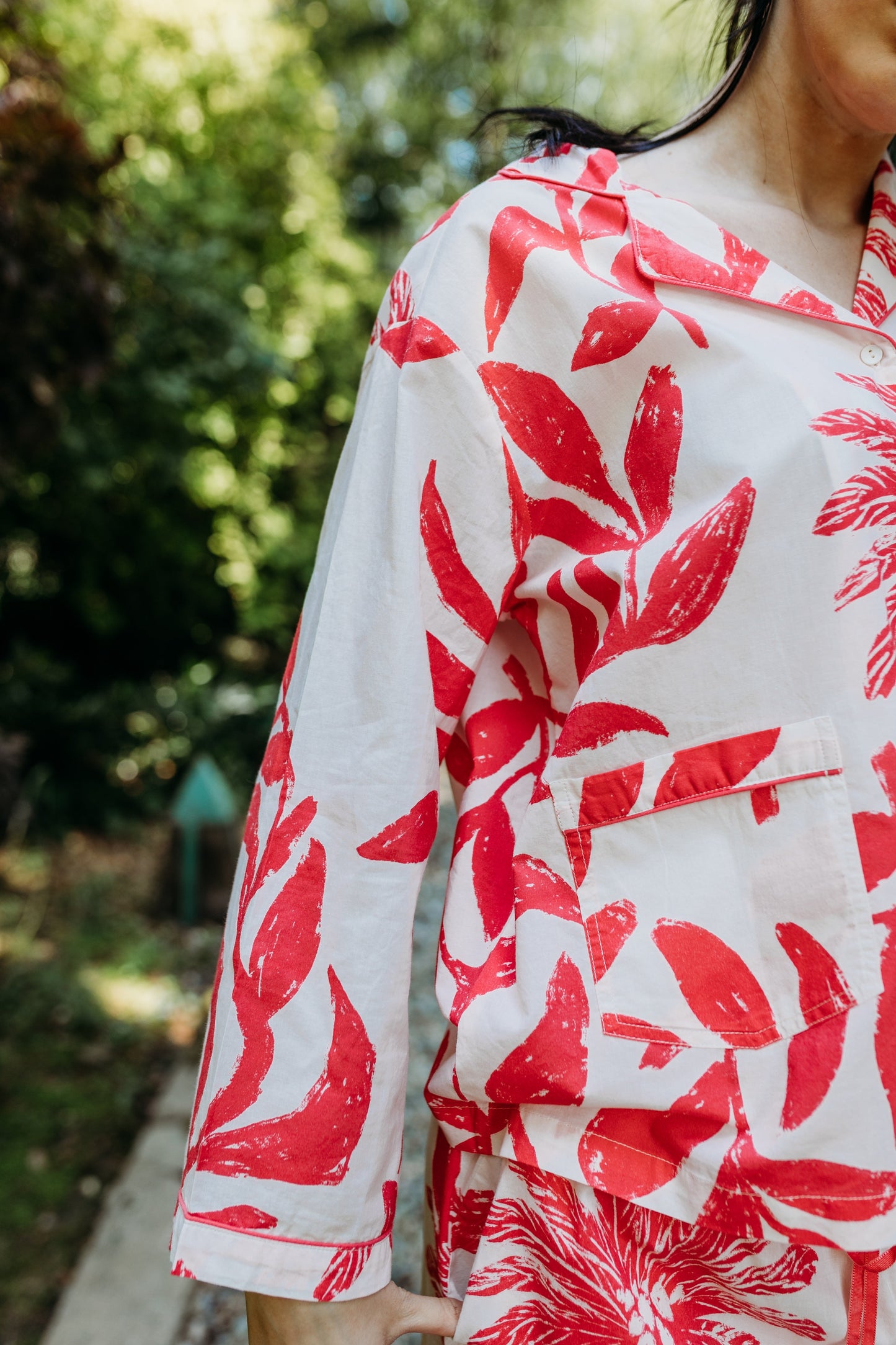 Designed by our talented artist Nisha, the hand-illustrated print is inspired by tropical palm trees and dreamy summer holidays. A unique, artistic touch that brings a little escapism to your nightwear.