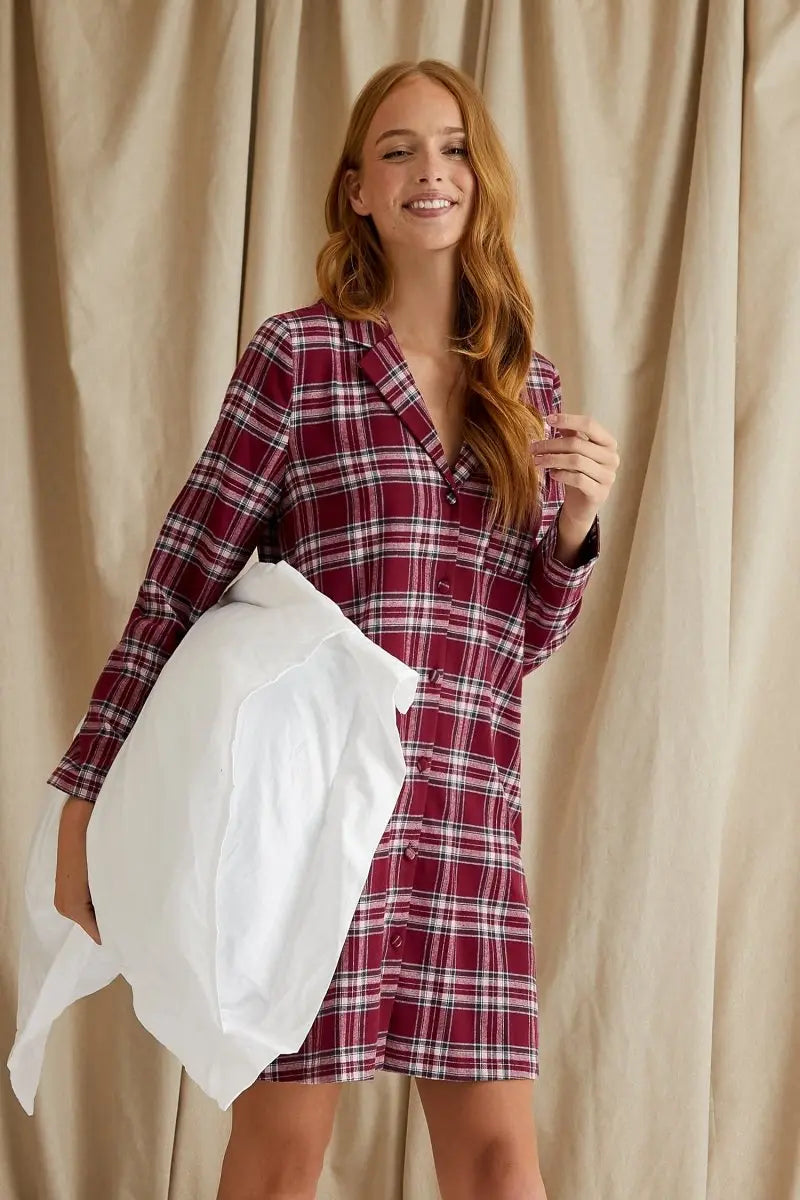 Bring a traditional, but stylish, feel to your nightwear with our Plaid Collection. Comfy regular fit, with a collared neckline and functional, tonal button-through fastenings. Patch chest pocket for added detail. Like plaid print? Our Plaid collection is also available as a Plaid Pyjama Set.