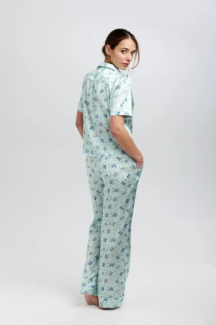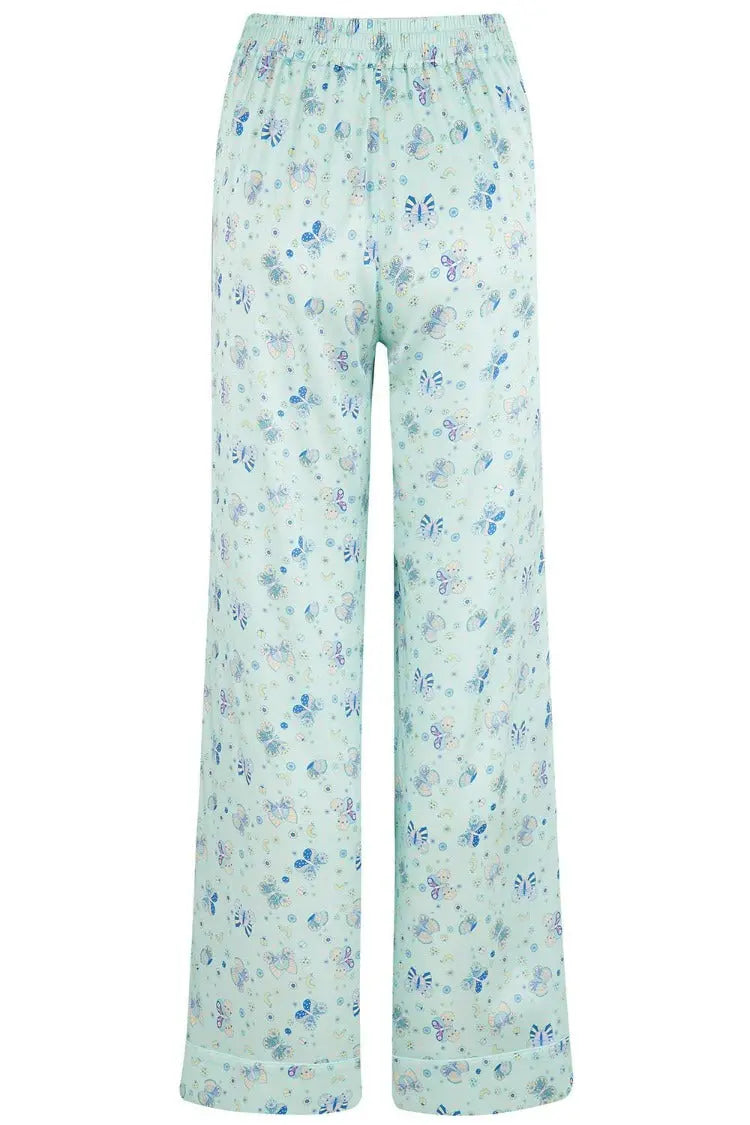 The Poppy Silk Trouser in Glacier Butterfly is perfectly cut and finely tailored to offer a closer, more refined fit. Crafted from the finest 19 momme Mulberry silk, these trousers feature just the right amount of stretch to allow for easy, unrestricted movement—ideal for both lounging and sleeping.