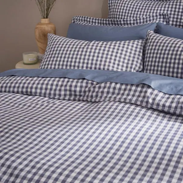 Bring timeless charm and year-round comfort to your sleep space with the Portloe Woven Gingham Duvet Cover Set. Crafted from 100% washed cotton for a relaxed linen-look aesthetic, this gingham-woven bedding is pre-washed for extra softness and a natural laundered finish. It's breathable, lightweight, and beautifully textured – perfect for cosy winter nights and breezy summer mornings alike.