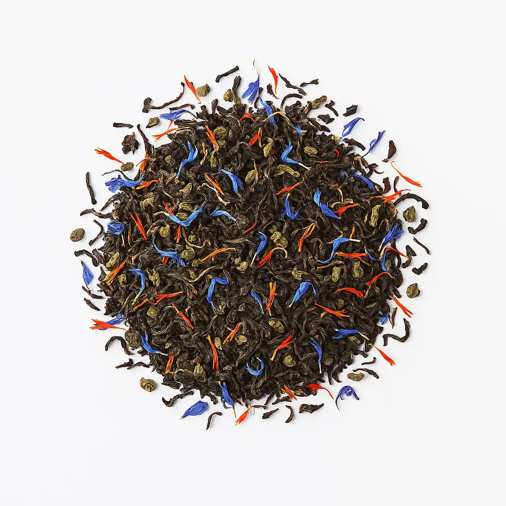 - Touch of green Gunpowder – adds freshness and complexity.