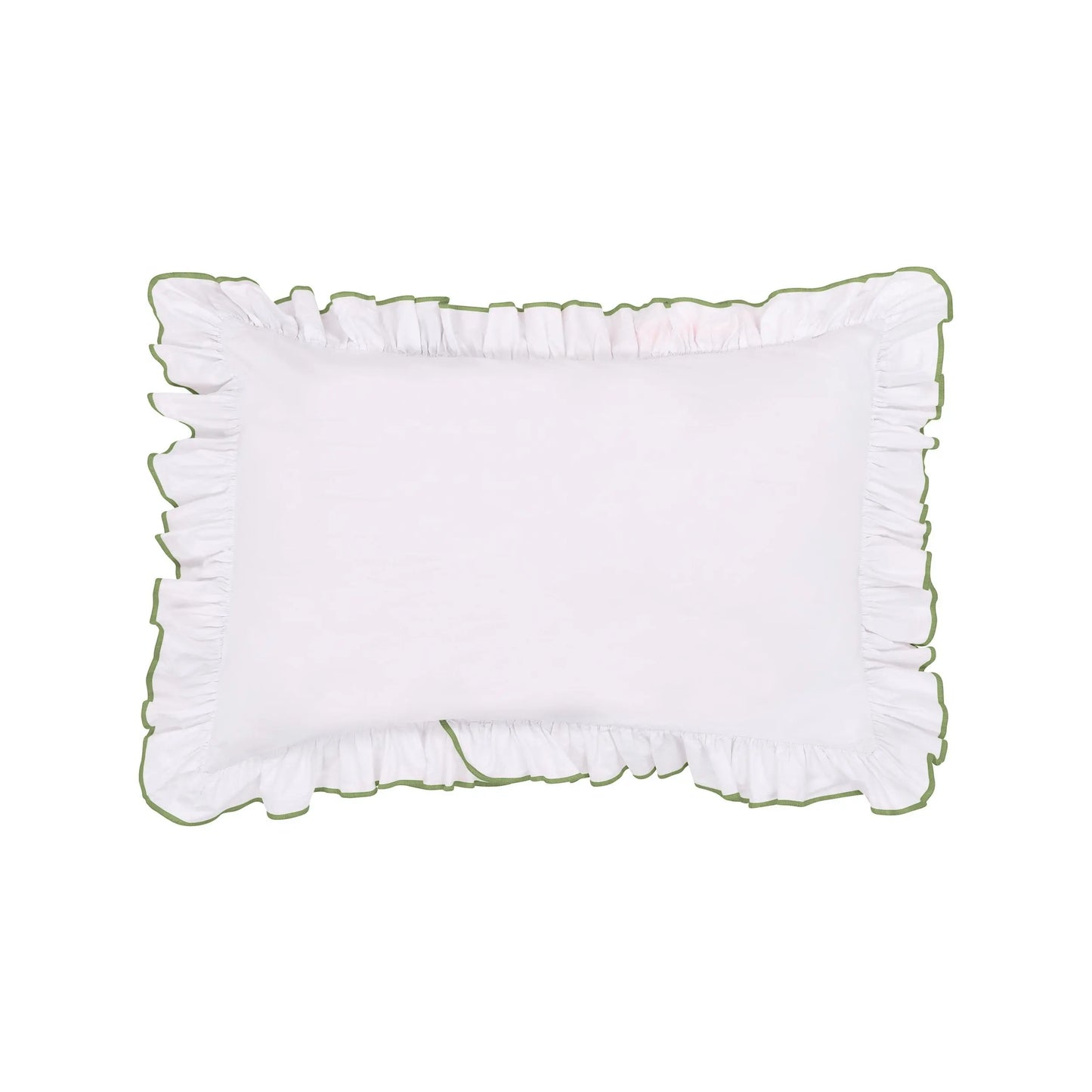 Provence-Inspired Frill Pillowcase with Sage Green/Olive Trim