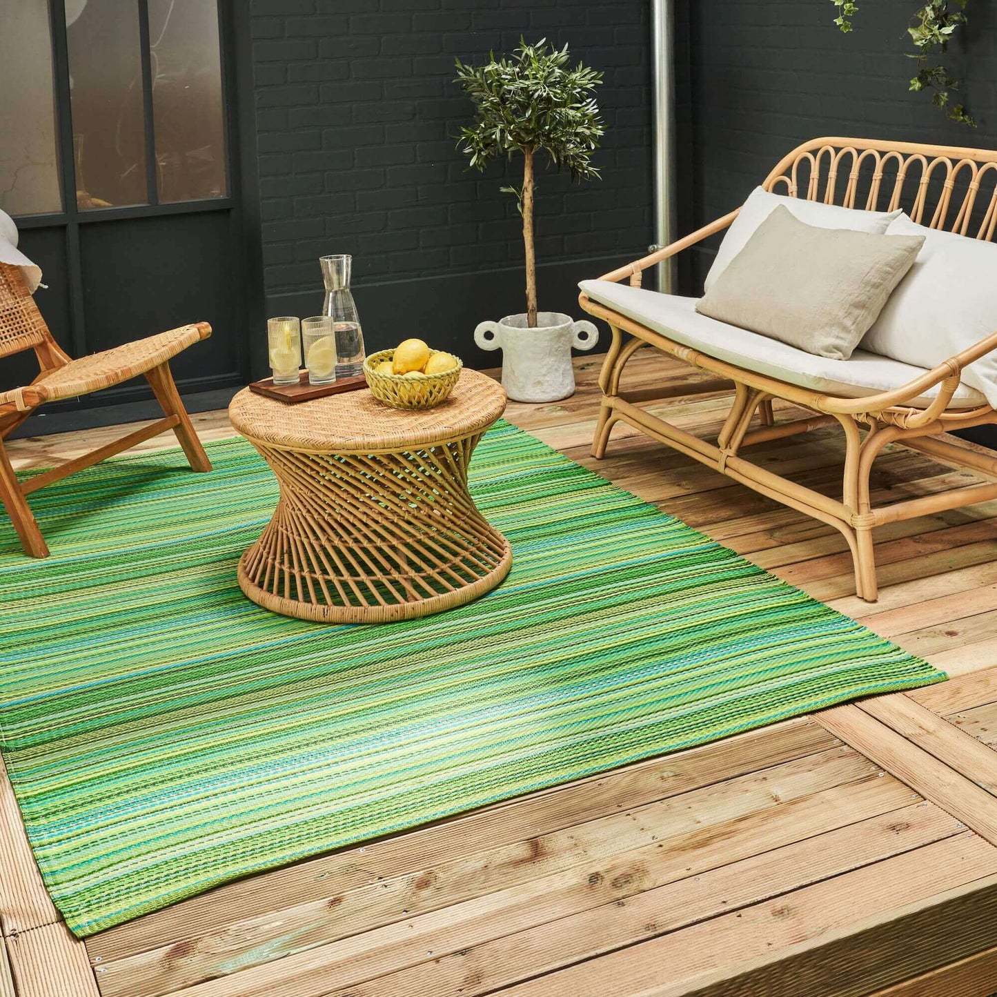 Vibrant Colors: The lively hues of the Rainbow Outdoor Rug bring a pop of colour to your outdoor decor, making it a standout piece in any environment.