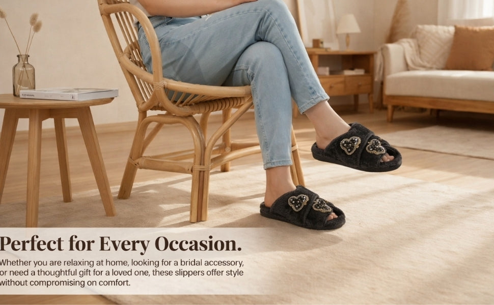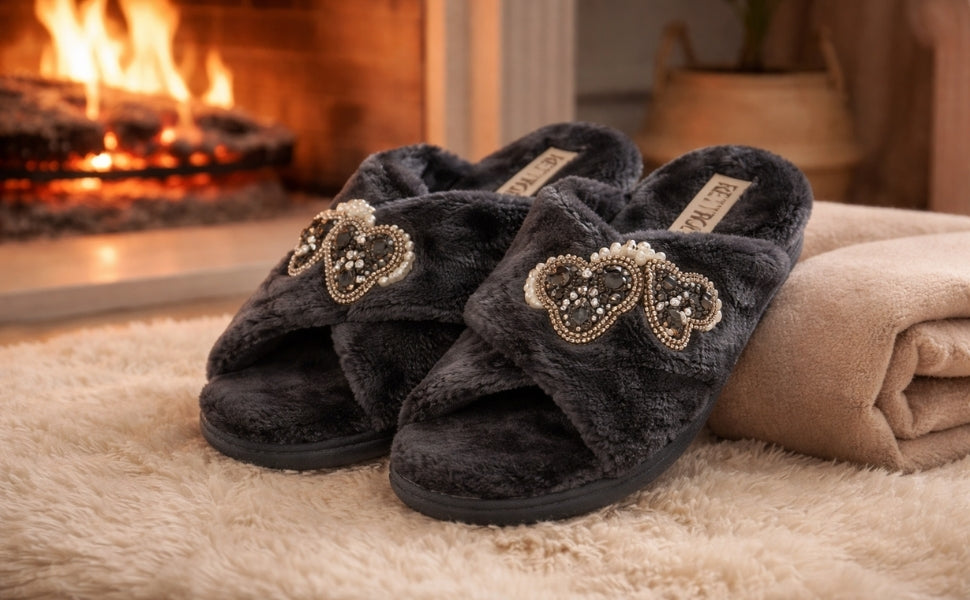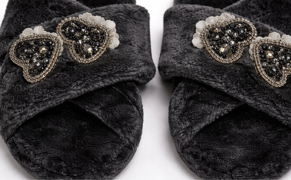 The highlight of this premium slipper is its hand-embellished diamanté heart, making each pair not just footwear—but a fashionable statement. Perfect for wearing around the house, during relaxed getaways, or even while hosting, the Katie slippers bring unmatched charm to your casual wardrobe.