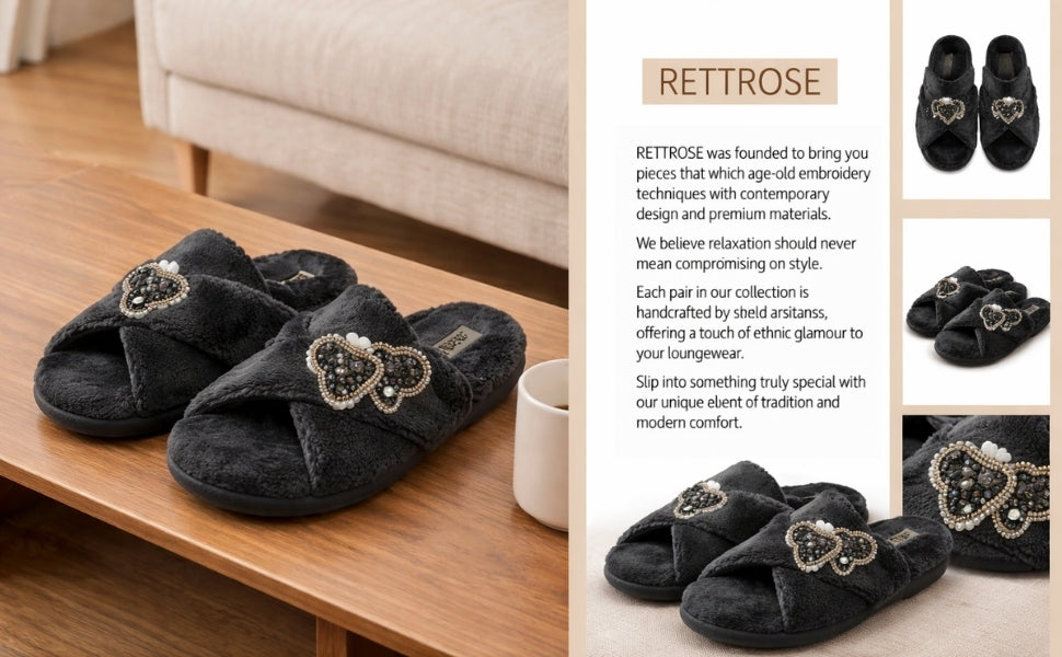Handcrafted with care, every pair is uniquely finished, delivering the artisanal quality RETTROSE is known for. Whether gifting or indulging yourself, the Katie Luxury Slippers redefine what women’s slippers should feel like: light, soft, luxurious, and stylish.