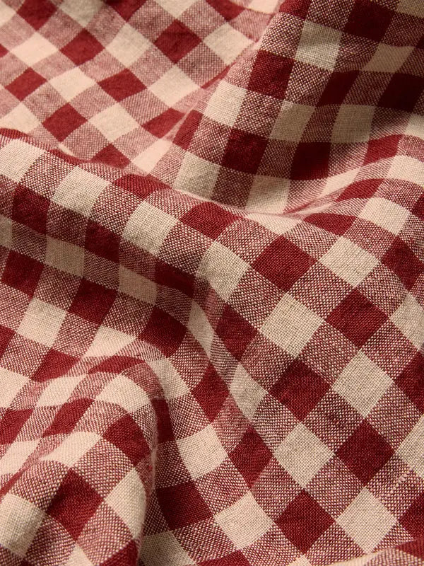 Rhubarb Gingham Linen Blend Duvet Cover