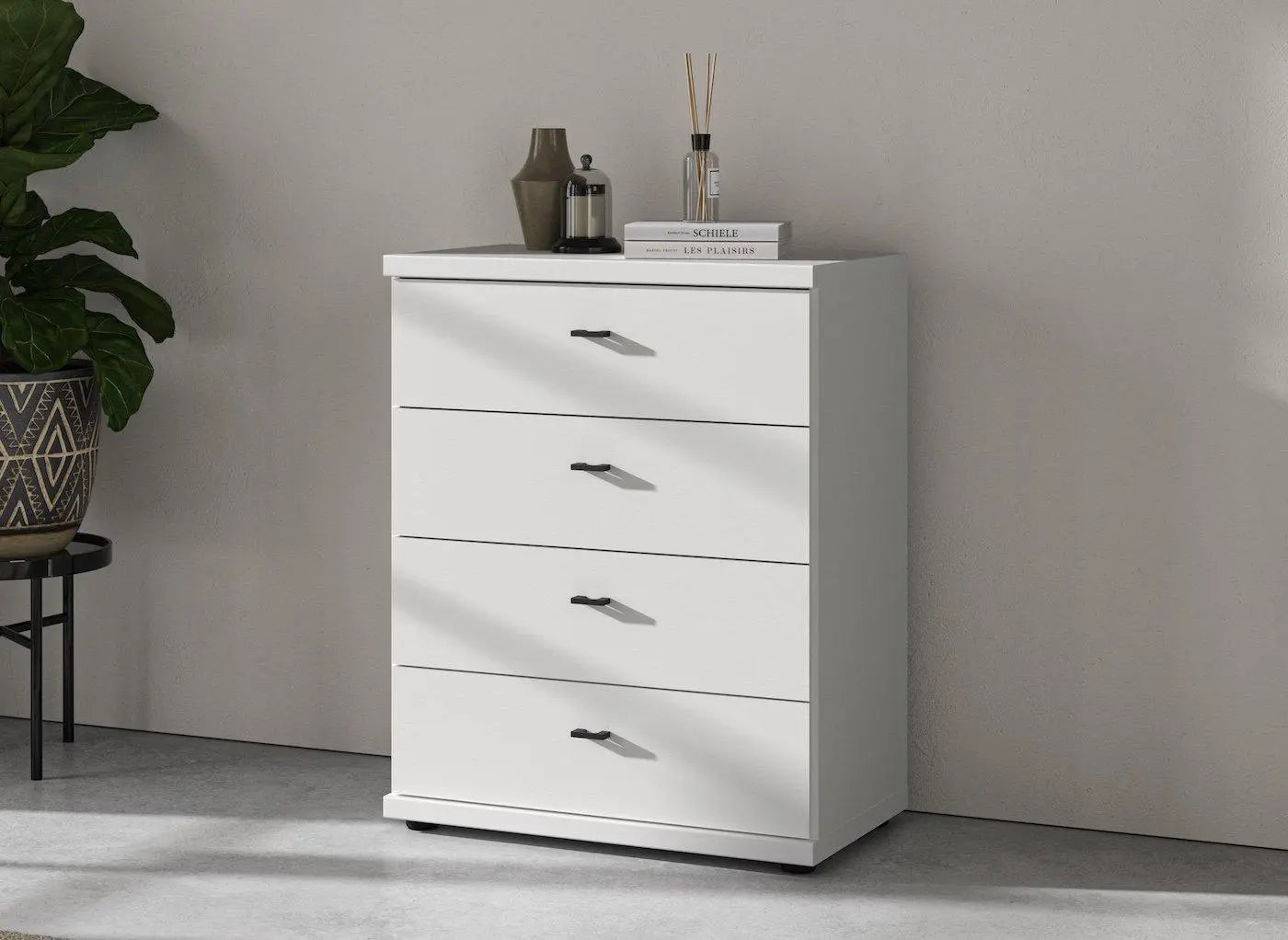 Why choose this chest of drawers? Available in a range of timeless colours, including wood-effect A choice of mordern matte or glass finish Four wide drawers Minimalist slate handles Arrives fully assembled Part of the Roberts collection Rest easy with a 1-year guarantee Whether you love chic monochrome, rustic wooden tones or sleek glass, we’ve got the look for you. The Roberts chest is available in your choice of finishes, with four wide drawers perfect for storing clothes, accessories and more. Modern slate handles complete the sturdy design, whilst discreet plastic feet protect your floors. This storage essential arrives fully assembled for your convenience. Pair this piece with our Roberts bedroom furniture for easy cohesion in your home. Drawer depth: 13cm