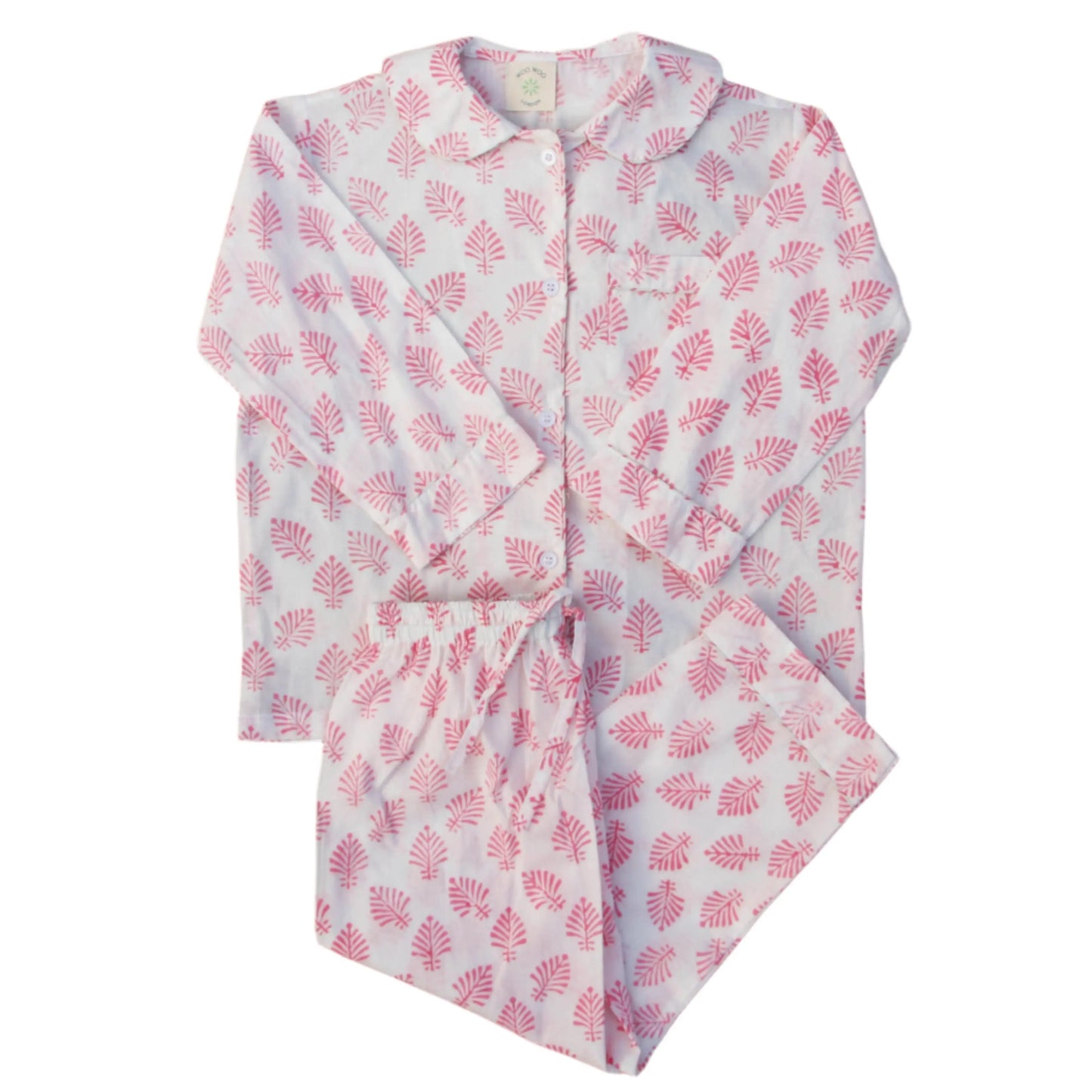 Rose Pink Leaf Block Print Cotton Pyjamas – Soft, Classic & Comfortably Stylish
