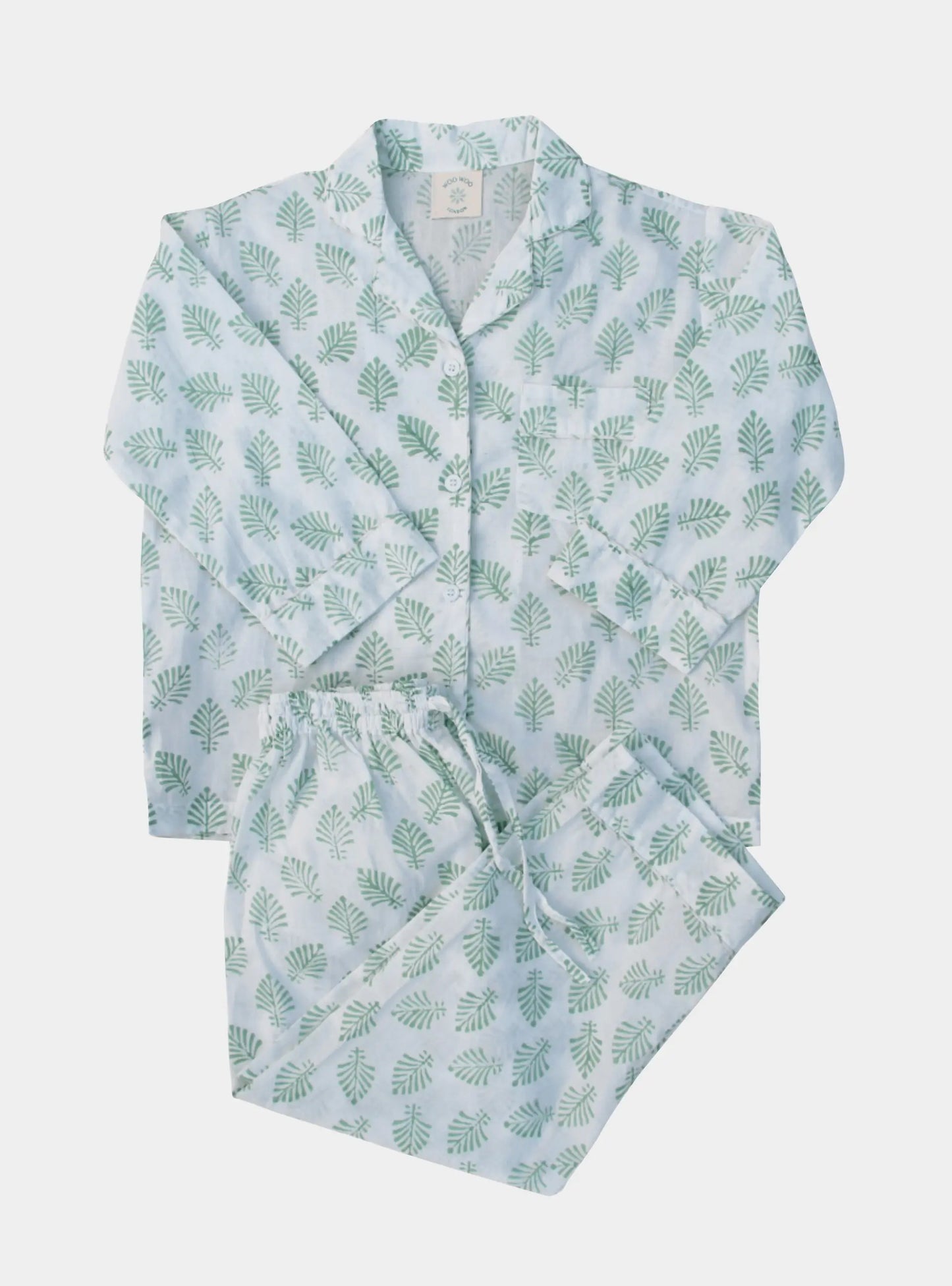 Leaf Block Print Cotton Pyjamas – Soft, Classic & Comfortably Stylish