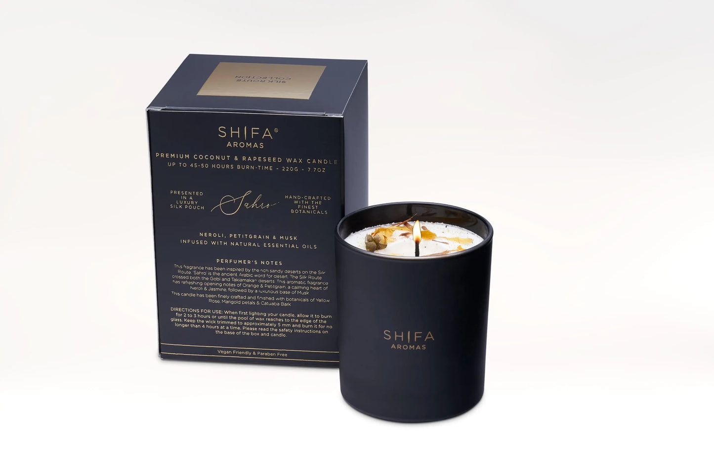 This fragrance has been inspired by the rich sandy deserts on the Silk Route. ‘Sahro’ is the ancient Arabic word for desert. The Silk Route crossed both the Gobi and Taklamakan deserts. This uplifting fragrance has refreshing opening notes of Orange & Petitgrain, a calming heart of Neroli & Jasmine, followed by a luxurious base of Musk.