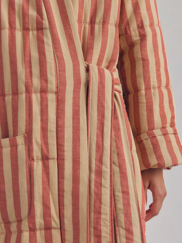 Sandstone Red Pembroke Stripe Linen Blend Housecoat