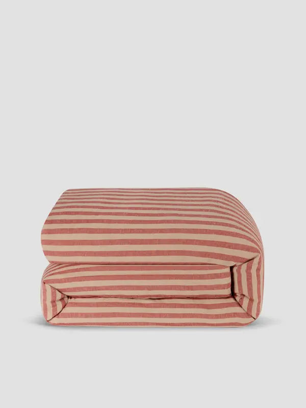 Sandstone Red Pembroke Stripe Duvet Cover – Linen Cotton Blend