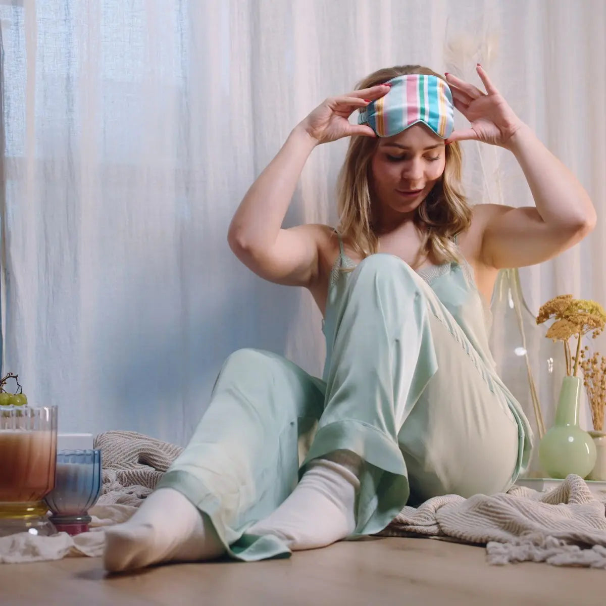 Wake Up Glowing with the Bold Stripe Satin Sleep Mask
