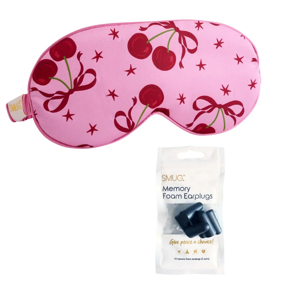 Sweet dreams are guaranteed with the SMUG Satin Sleep Mask in Pink Cherries. This soft, silky mask protects your skin and hair while you rest, making it perfect for self-care nights, girly weekends, or pamper gifts.