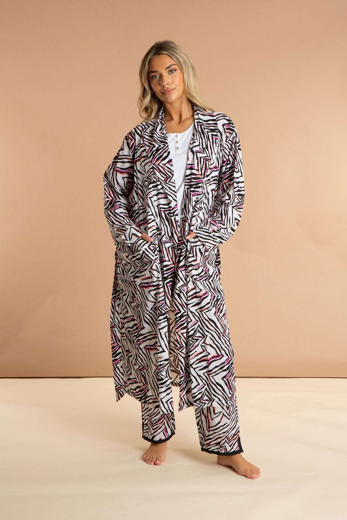 Regular price £27.50Our Savannah women's cotton robe has a pattern inspired by the glowing sunsets in the African plains. Featuring deep pockets, a wide collar, and an inner drawstring for security, this long luxury dressing gown is made from soft and breathable 100% Indian cotton, which is carefully printed and pre-washed. Our comfortable, bold printed loungewear proves that comfortable and fashionable can mix.