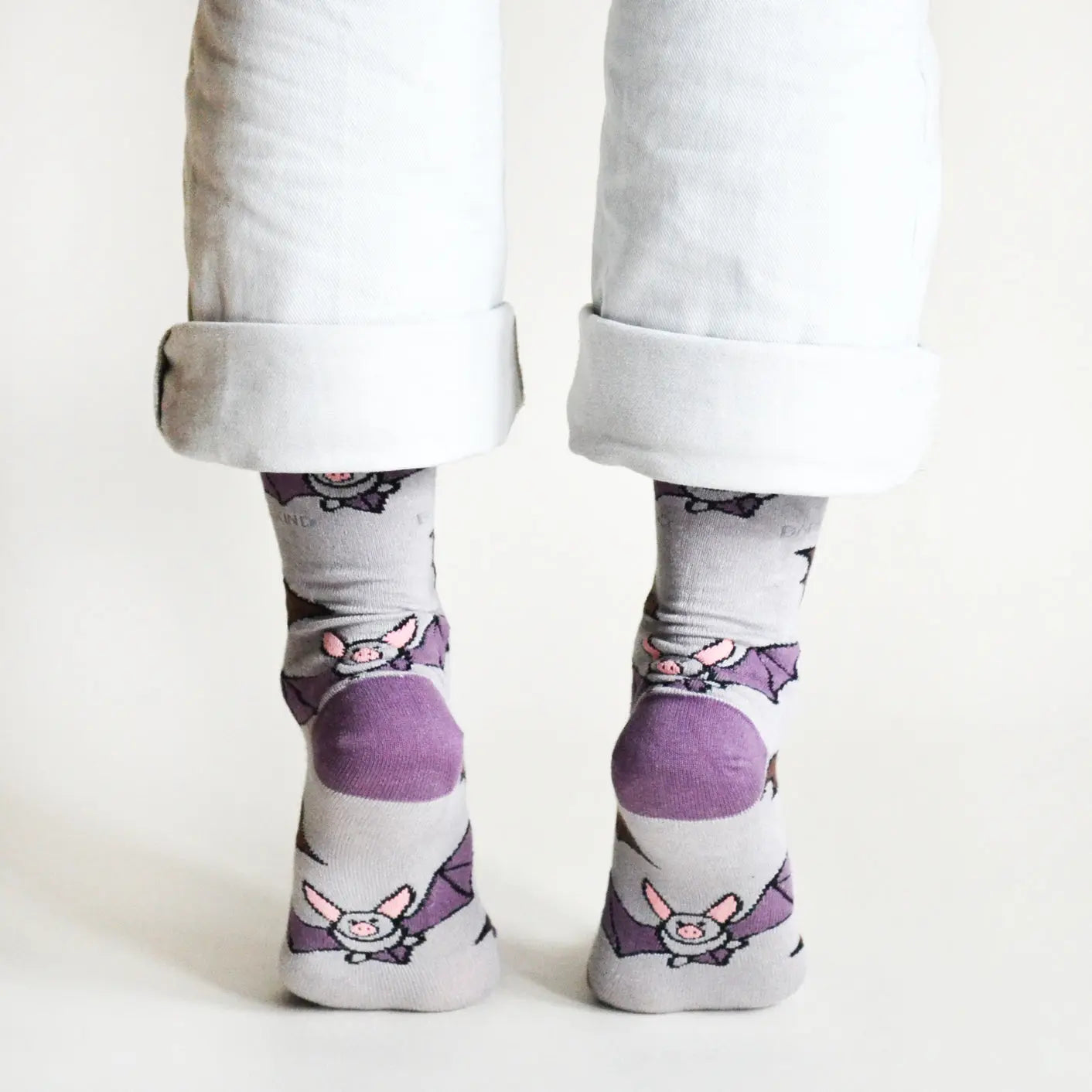 - Design: Lavender socks with animated bat pattern