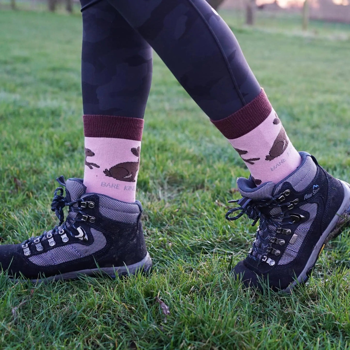- Design: Pink socks with animated hare motifs