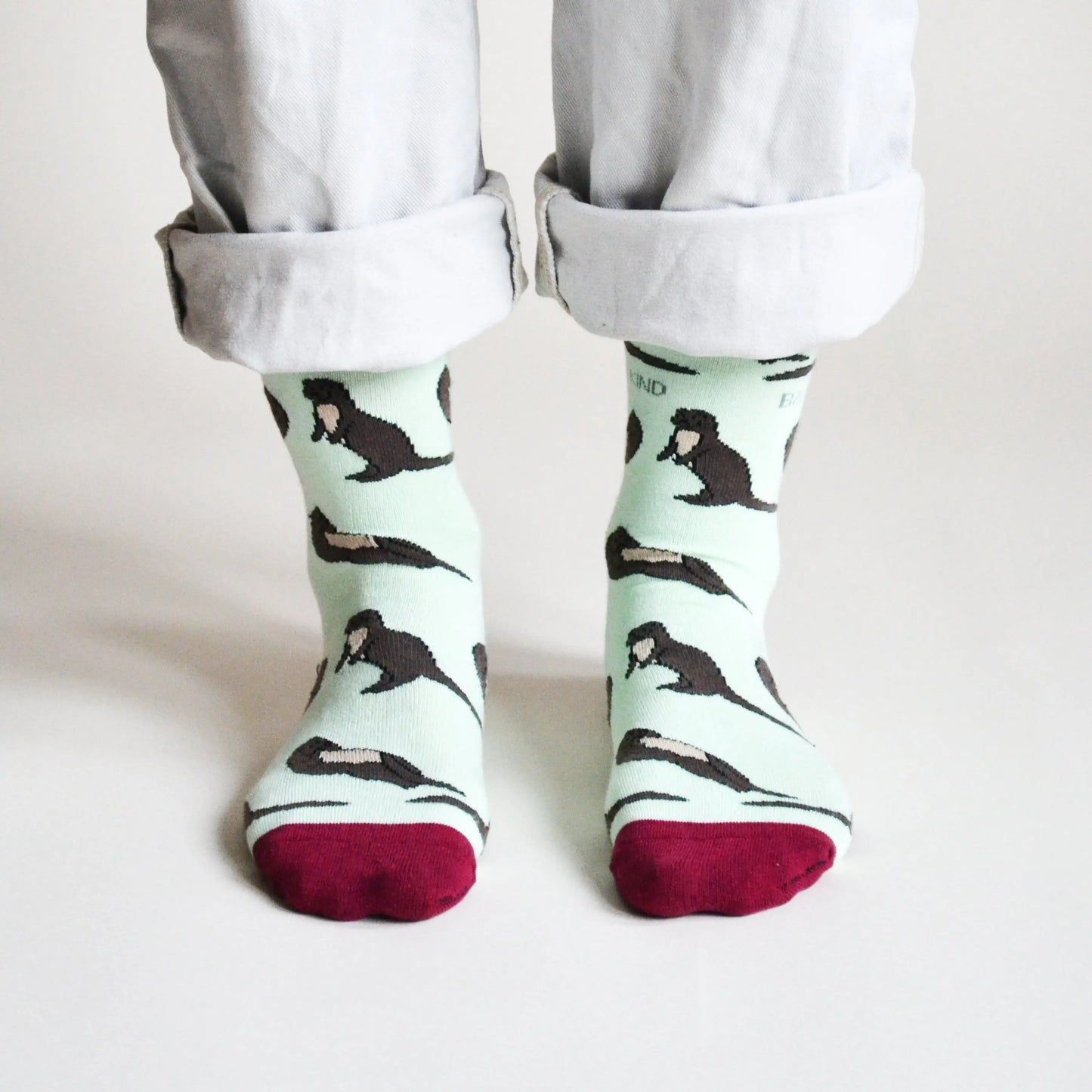 These Otter Socks are high-quality, comfortable blue socks made from breathable bamboo fibre that feature animated otters all around. Otters are semiaquatic animals that start learning to swim from only 10 weeks old. They can close their ears and noses while underwater too.